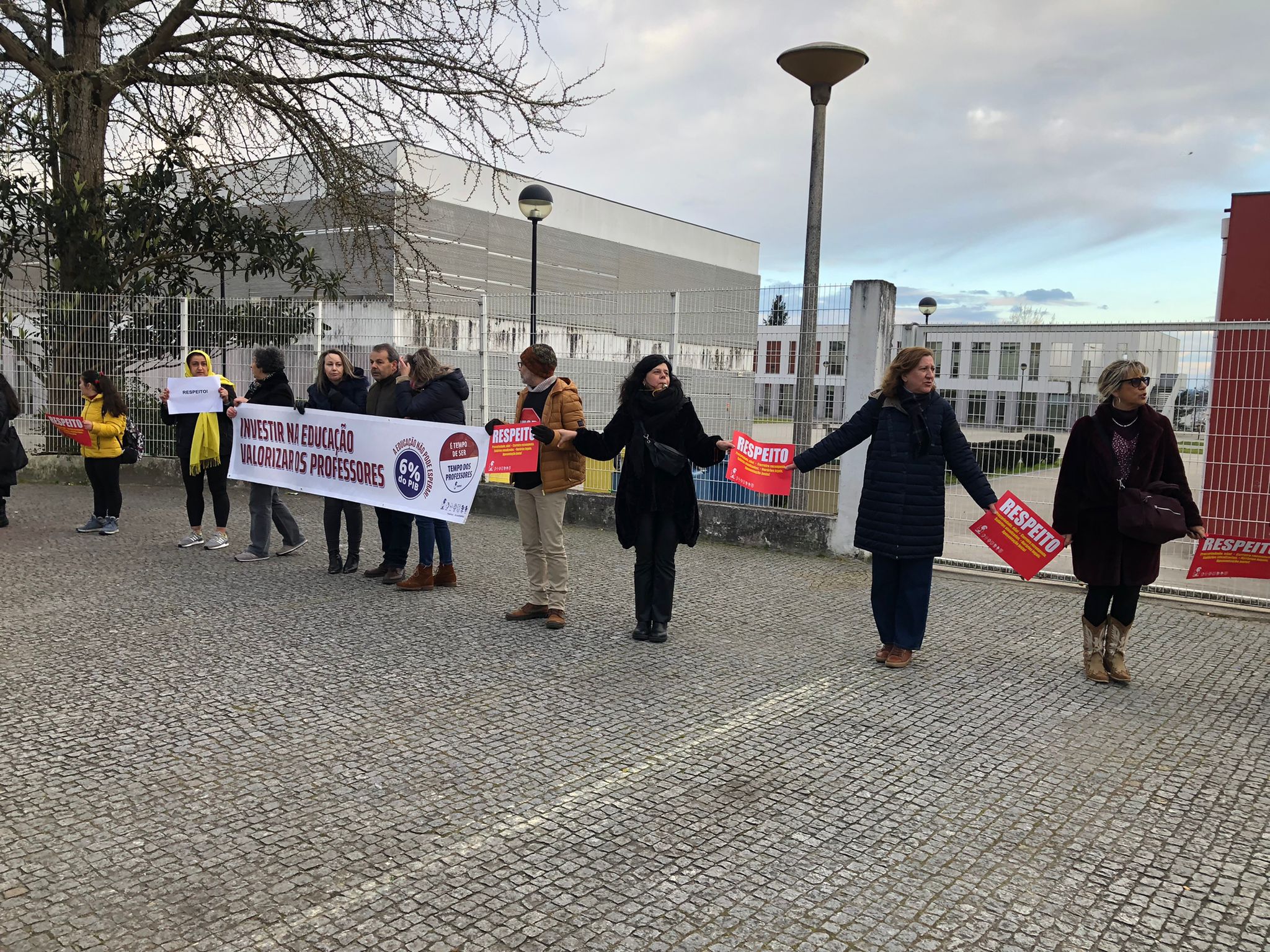 No distrito do Porto, o dia começou com concentrações à porta de várias escolas, como nos Agrupamentos de Escolas de Canelas e Soares dos Reis (V.N. Gaia), e um cordão humano em Gondomar que uniu a Escola Secundária ao Agrupamento de Escolas D. Dinis.