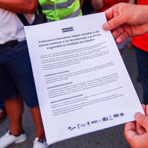 No final, os responsáveis das nove organizações sindicais entregaram a moção que foi votada e aprovada por unanimidade nos serviços administrativos, uma vez que o Primeiro-Ministro informou, antecipadamente, não ter disponibilidade de agenda para receber os professores.
