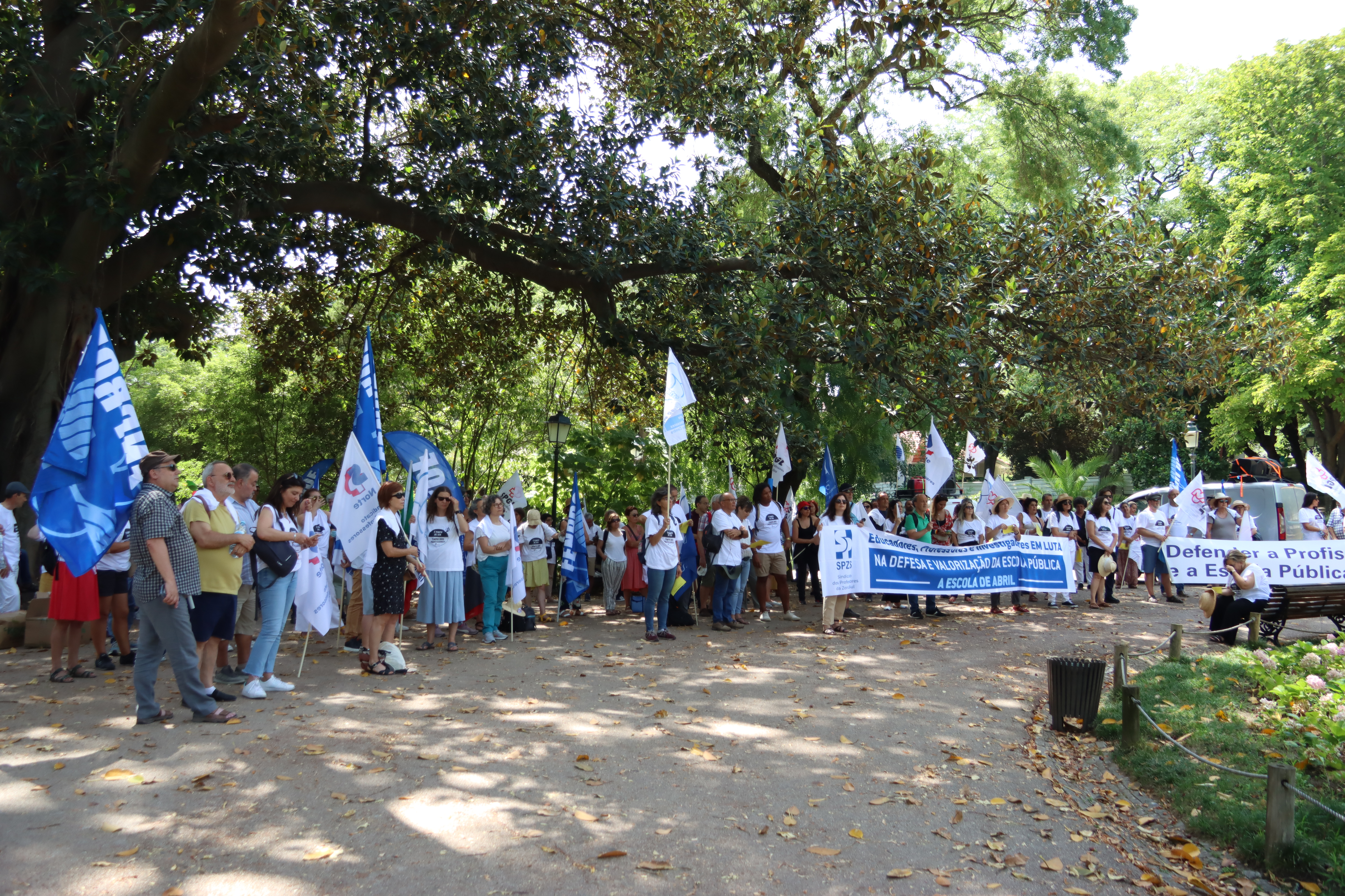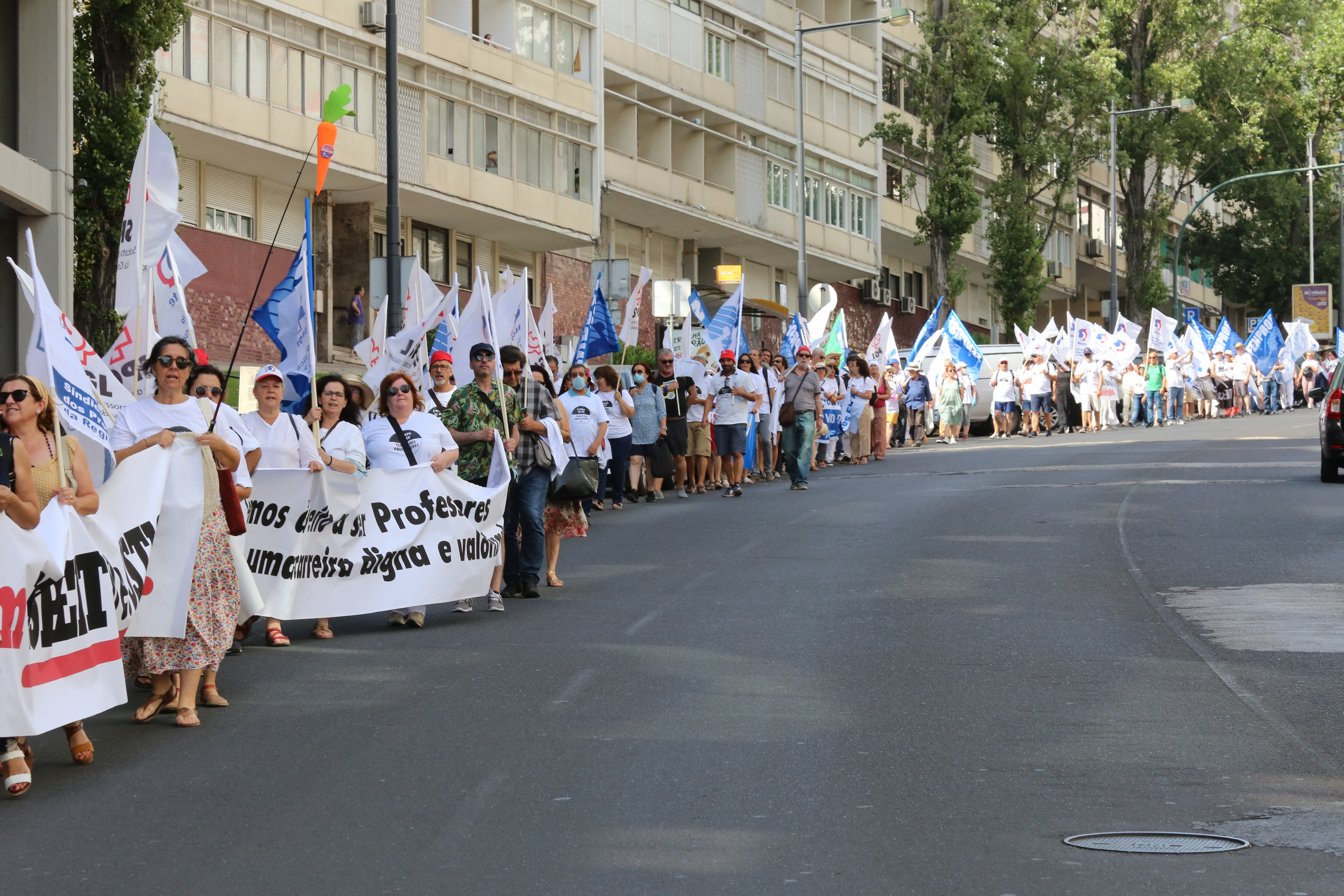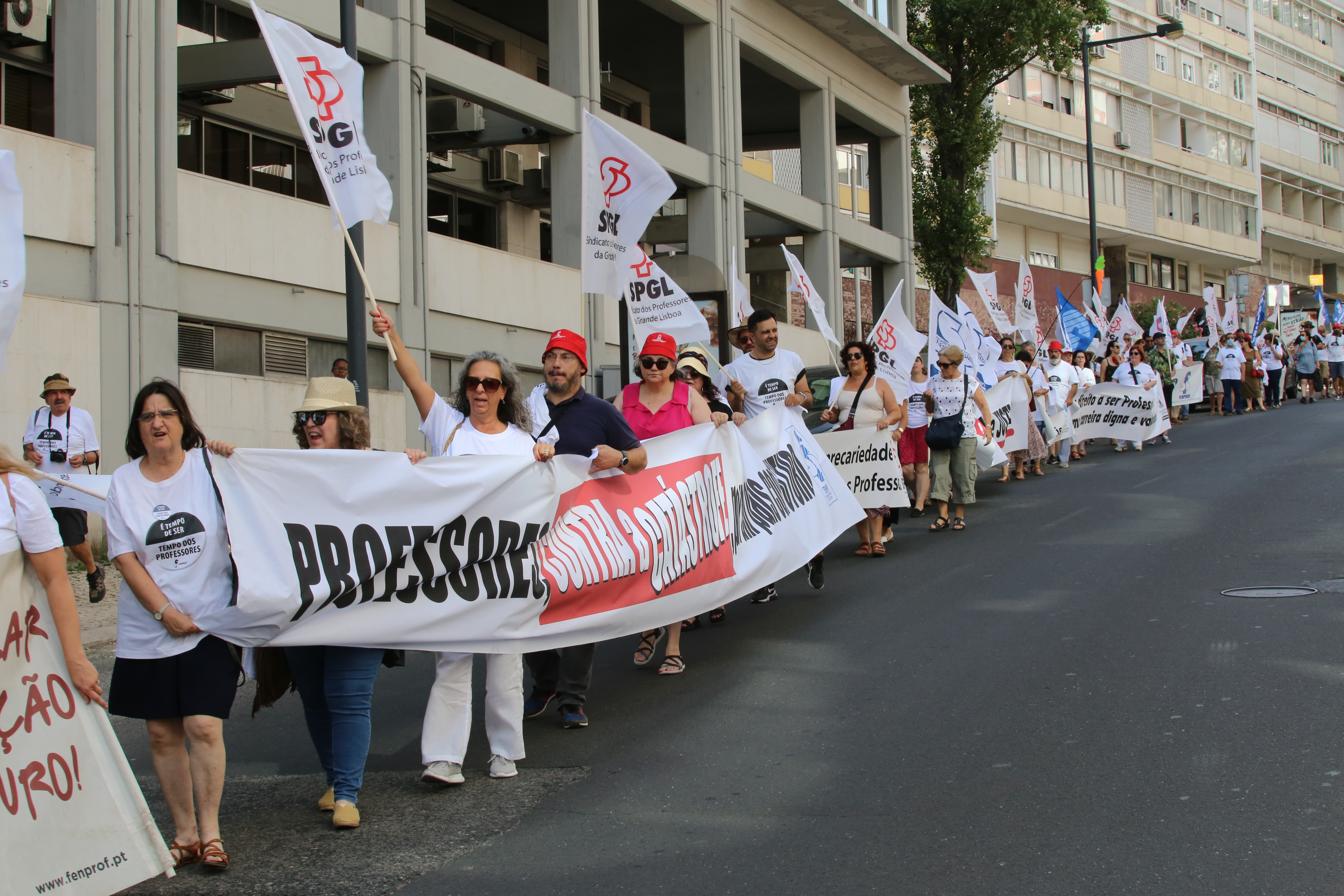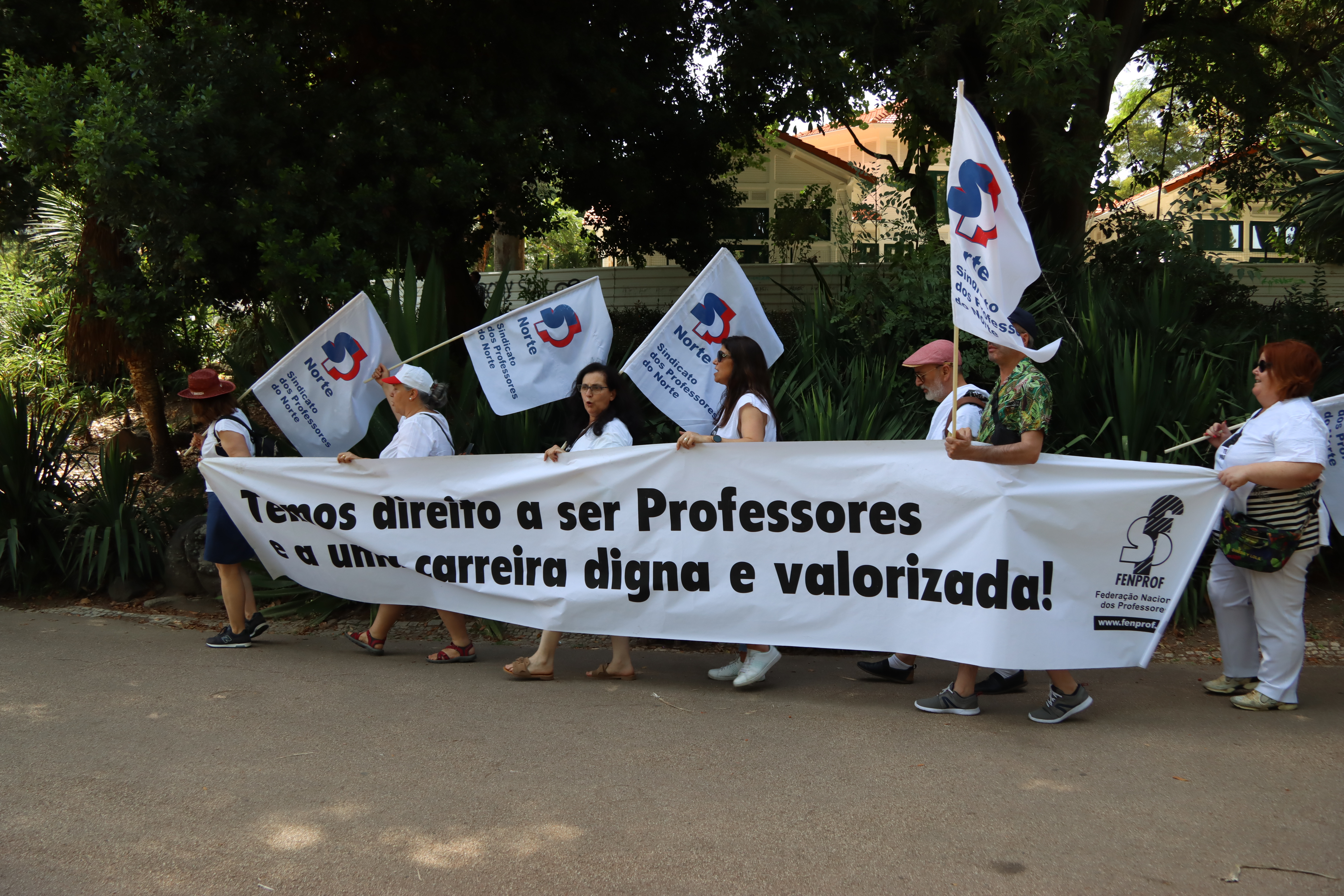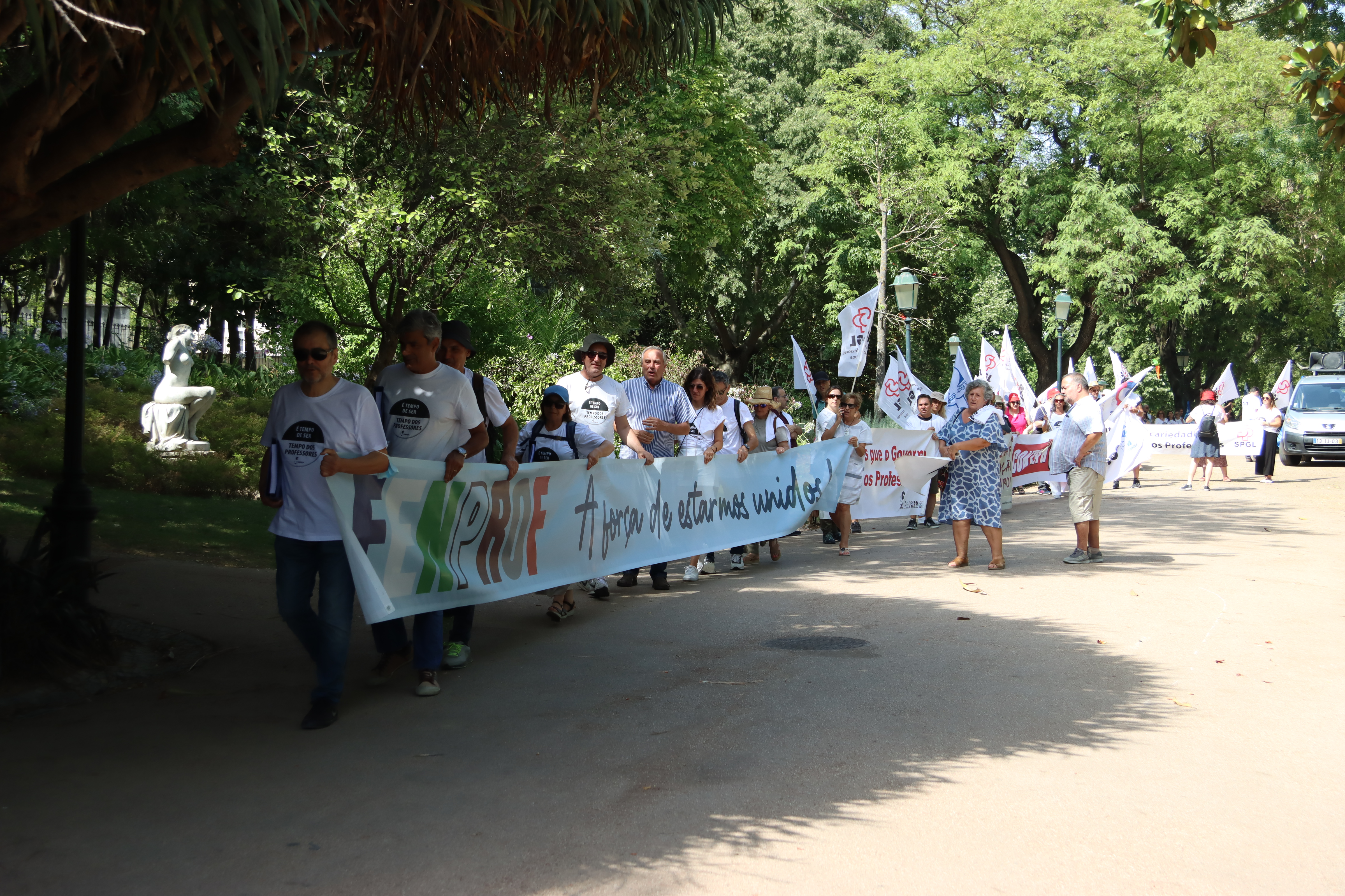 Após o plenário, realizado no Jardim da Estrela, em Lisboa, os professores desfilaram, em cordão humano, pela Avenida Infante Santo até às instalações do ME, onde entregaram a moção aprovada e o abaixo-assinado que reuniu mais de 17 mil assinaturas e onde estão resumidas as principais reivindicações dos docentes. Recorde-se que este abaixo-assinado já foi entregue à Assembleia da República, em forma de petição, e já foi debatido na Comissão Parlamentar de Educação e Ciência.