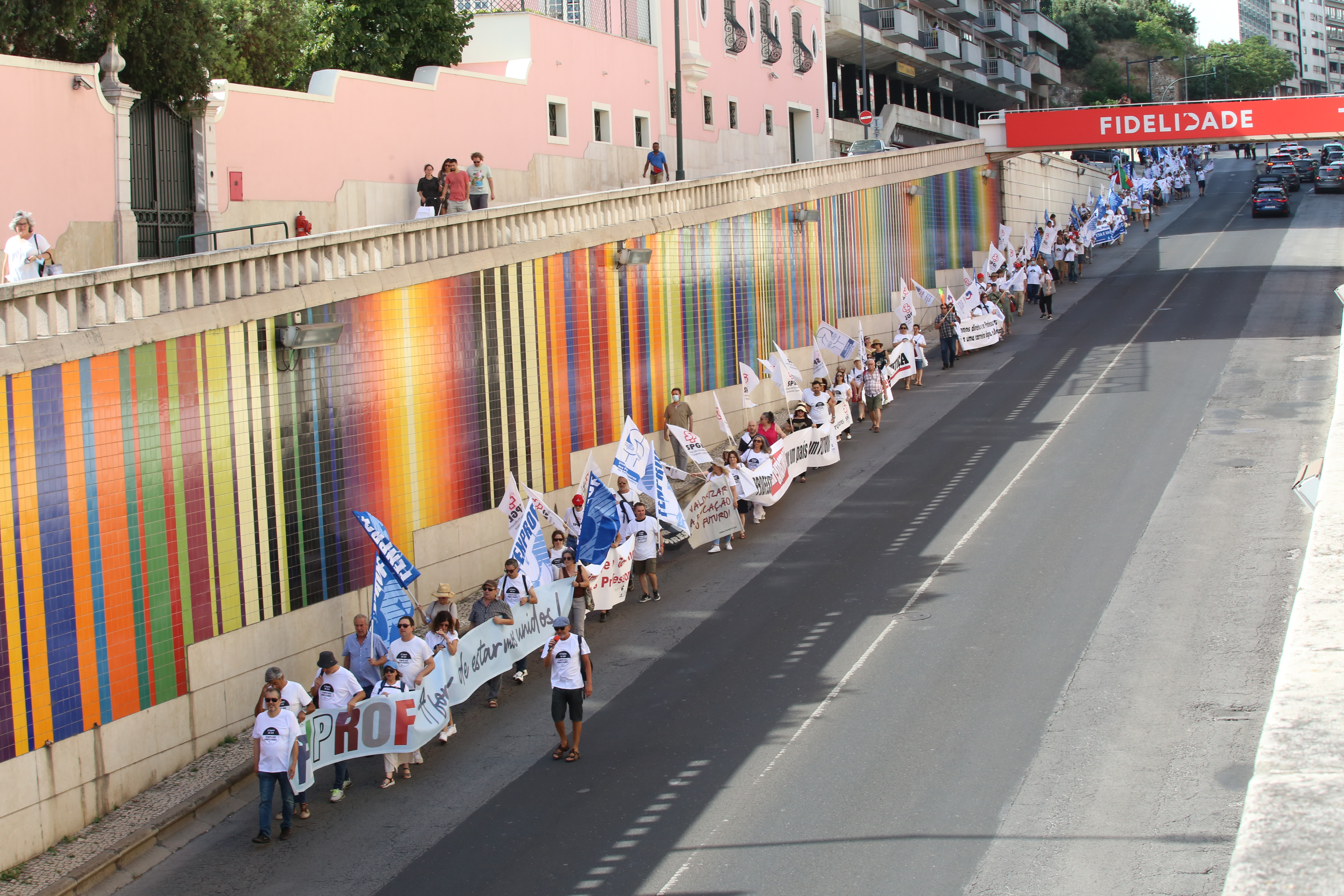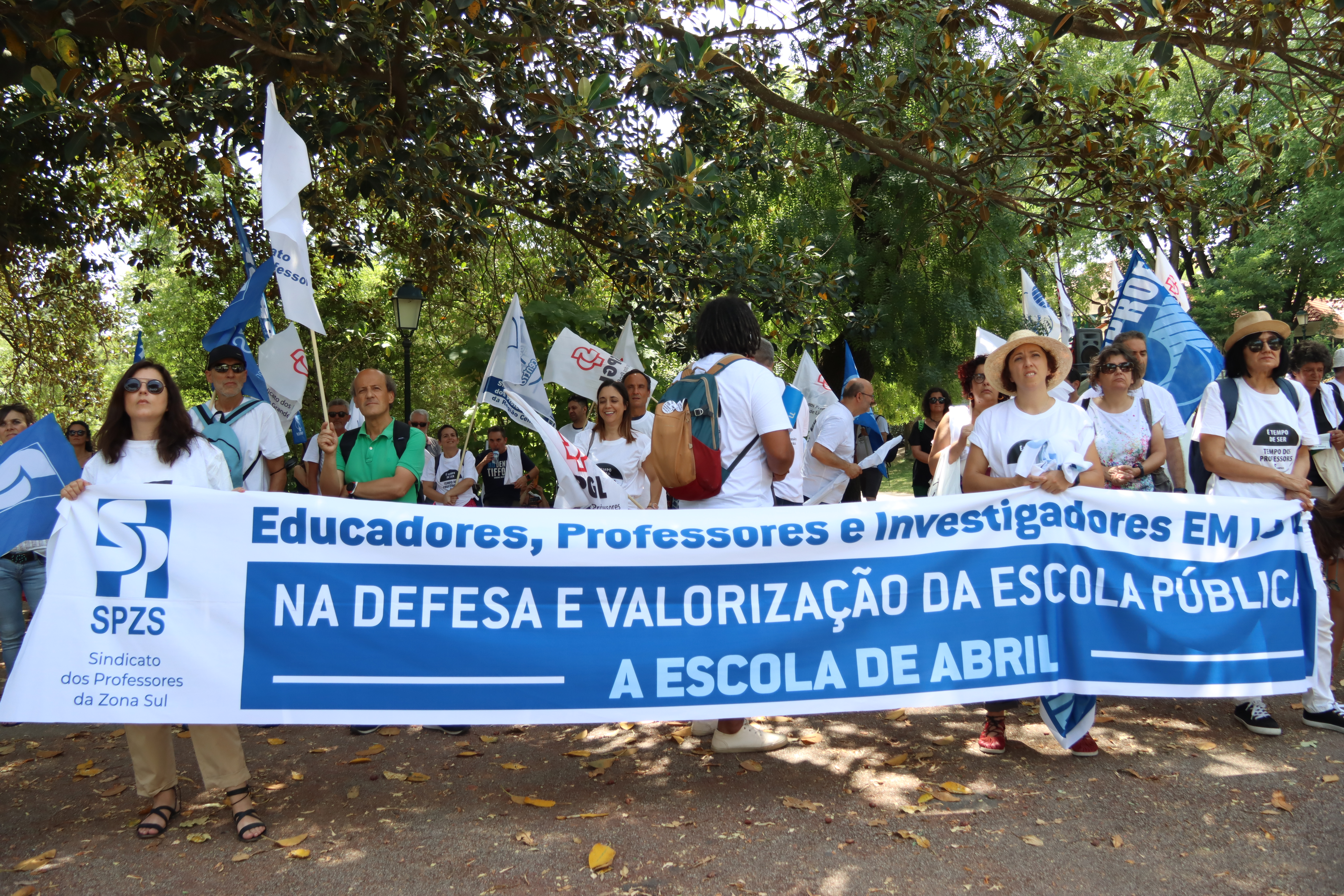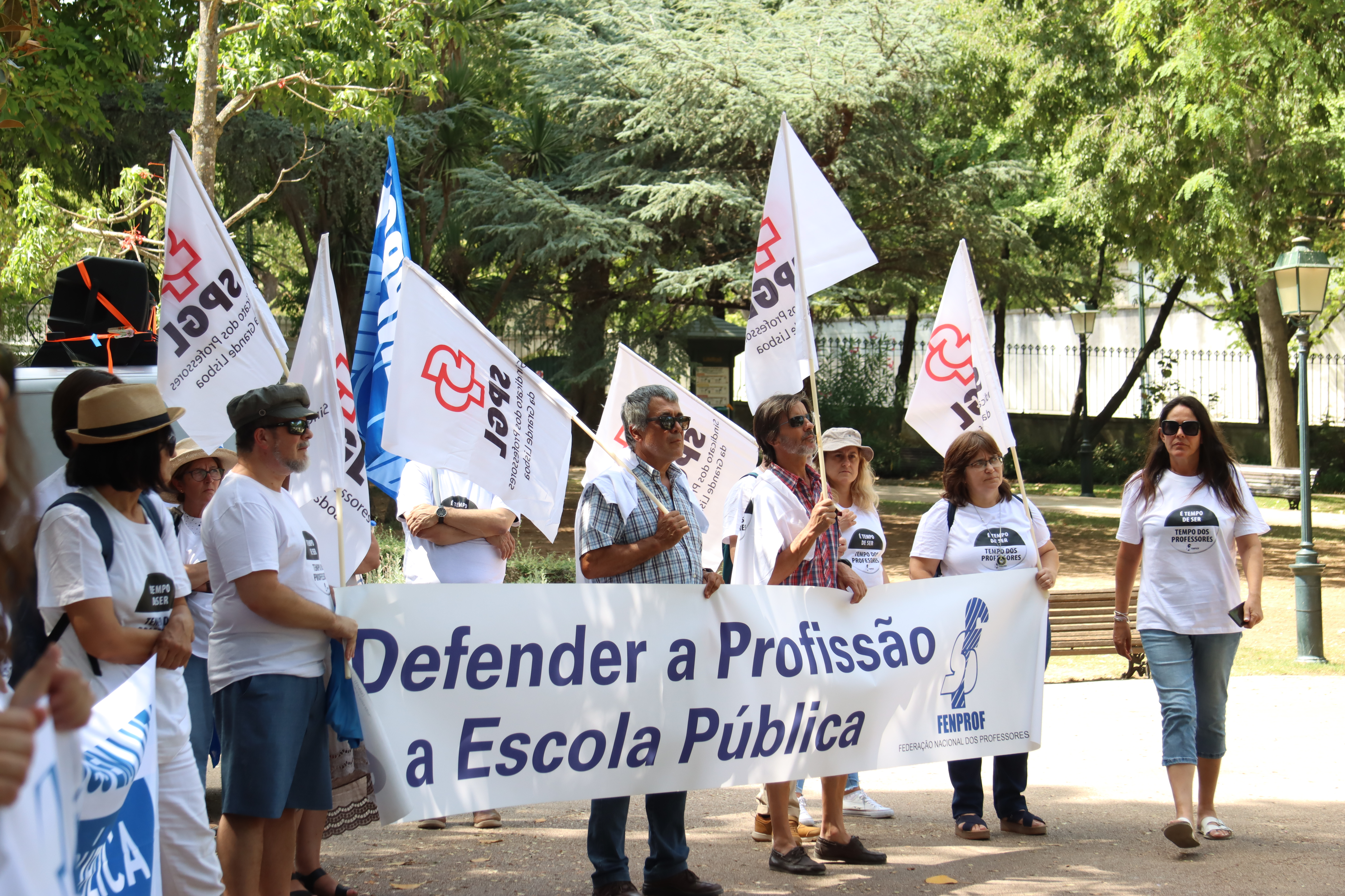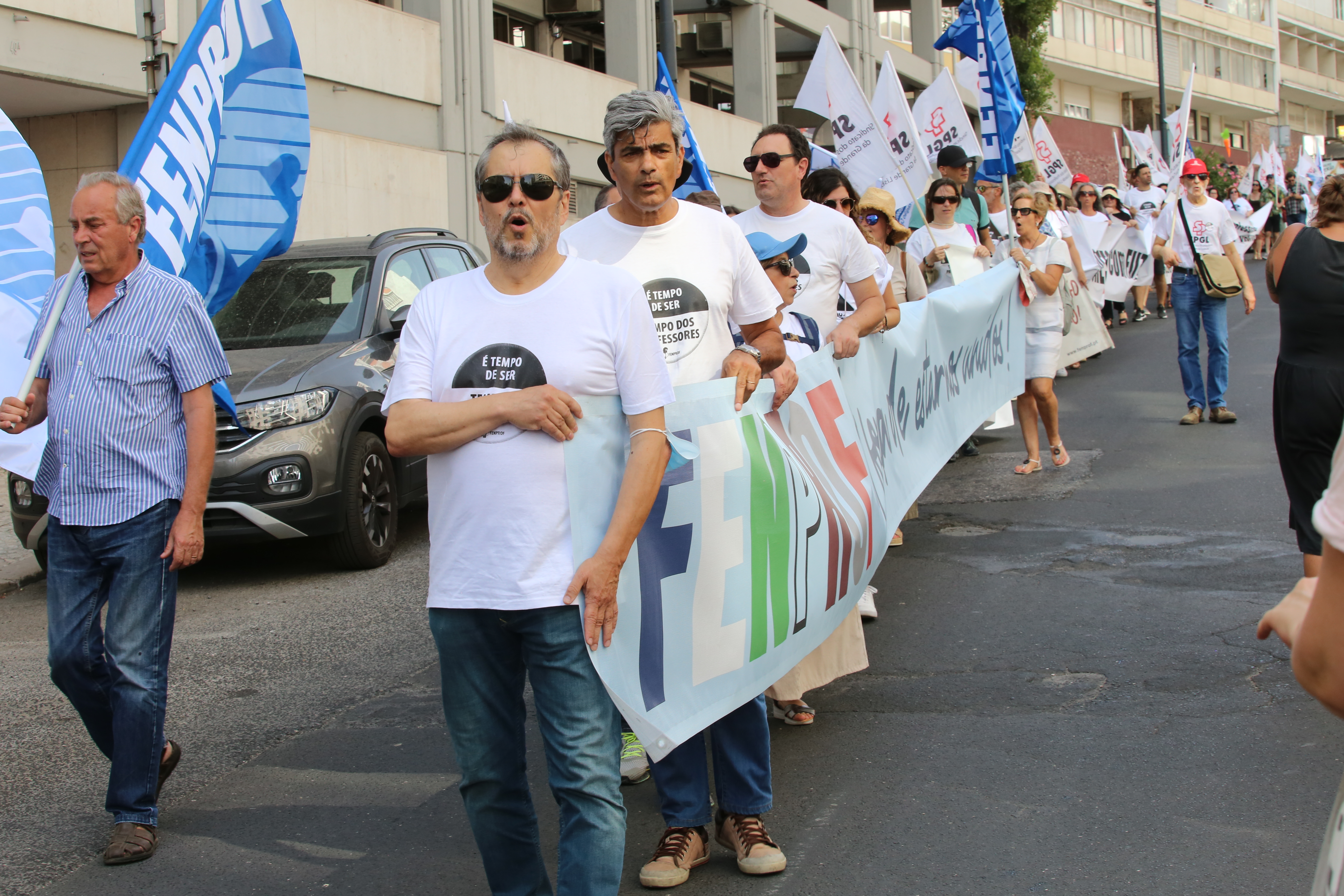 Após o plenário, realizado no Jardim da Estrela, em Lisboa, os professores desfilaram, em cordão humano, pela Avenida Infante Santo até às instalações do ME, onde entregaram a moção aprovada e o abaixo-assinado que reuniu mais de 17 mil assinaturas e onde estão resumidas as principais reivindicações dos docentes. Recorde-se que este abaixo-assinado já foi entregue à Assembleia da República, em forma de petição, e já foi debatido na Comissão Parlamentar de Educação e Ciência.