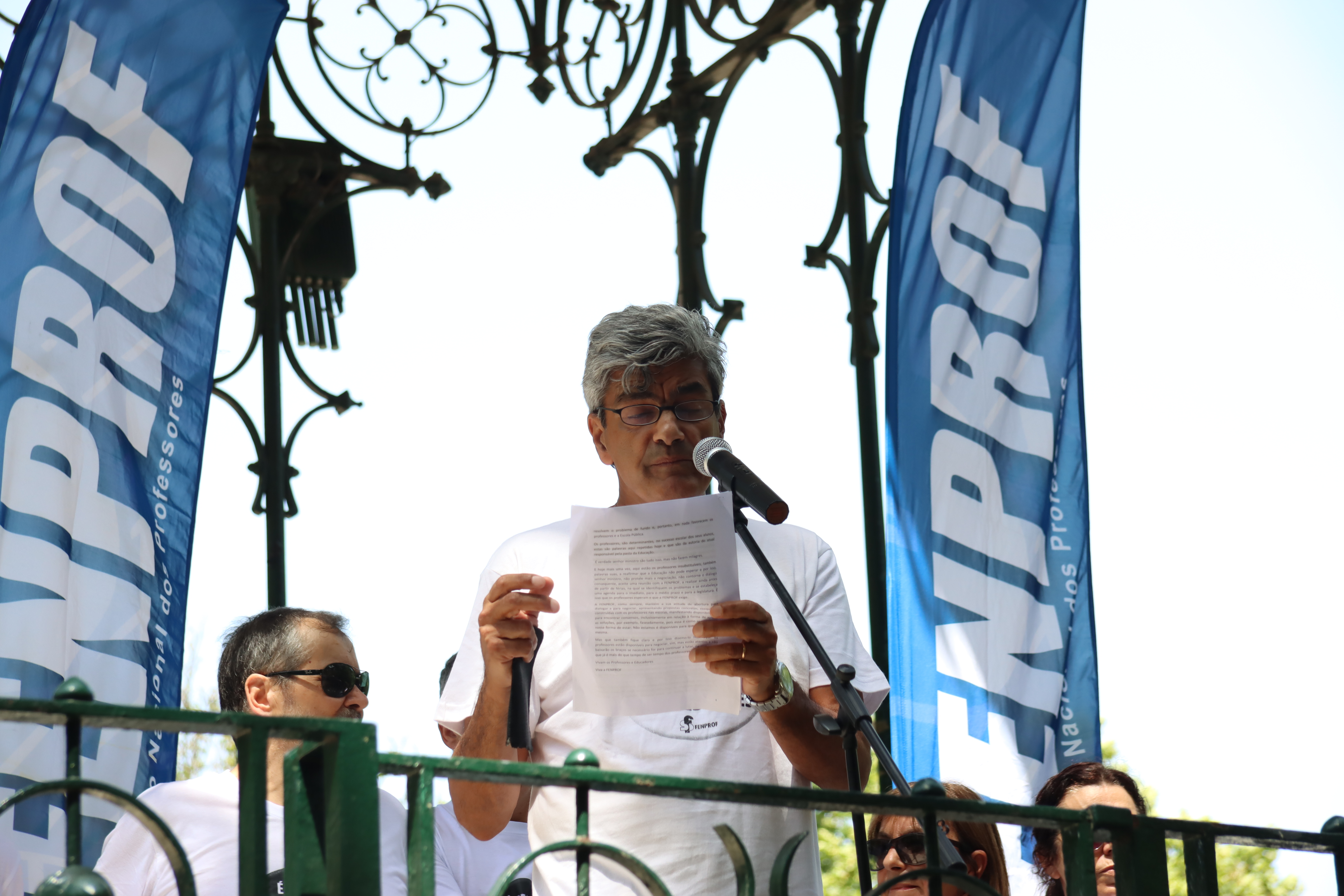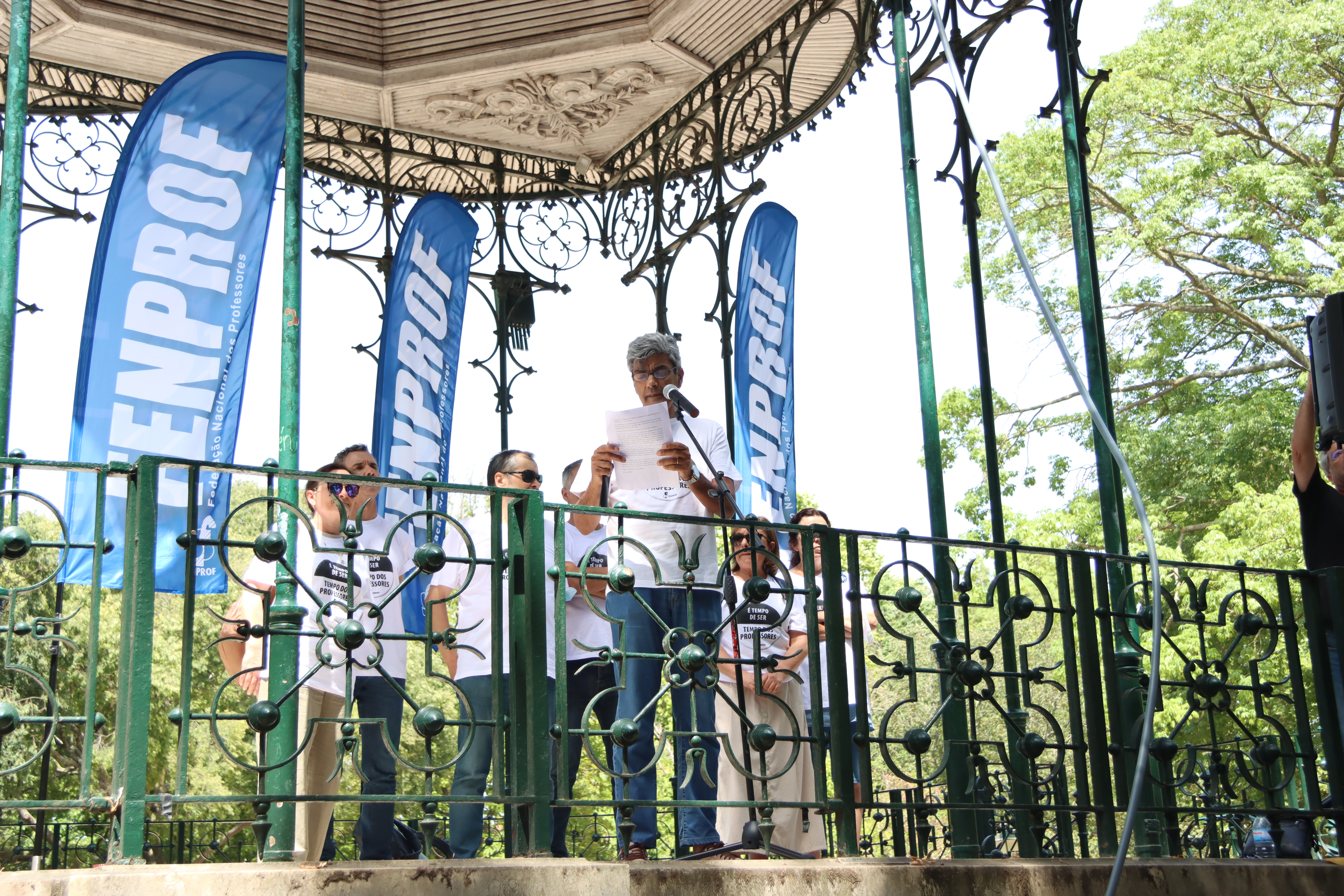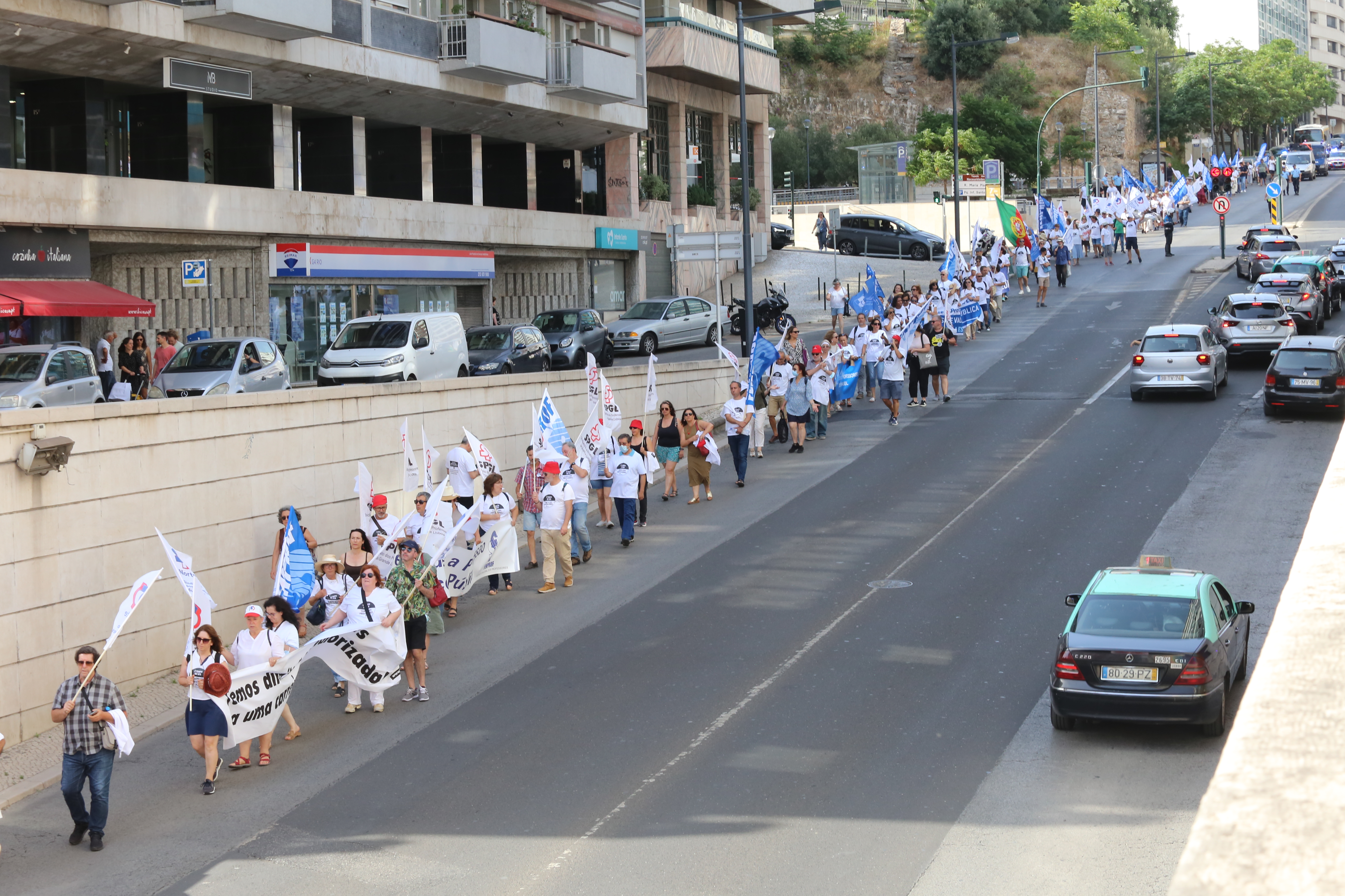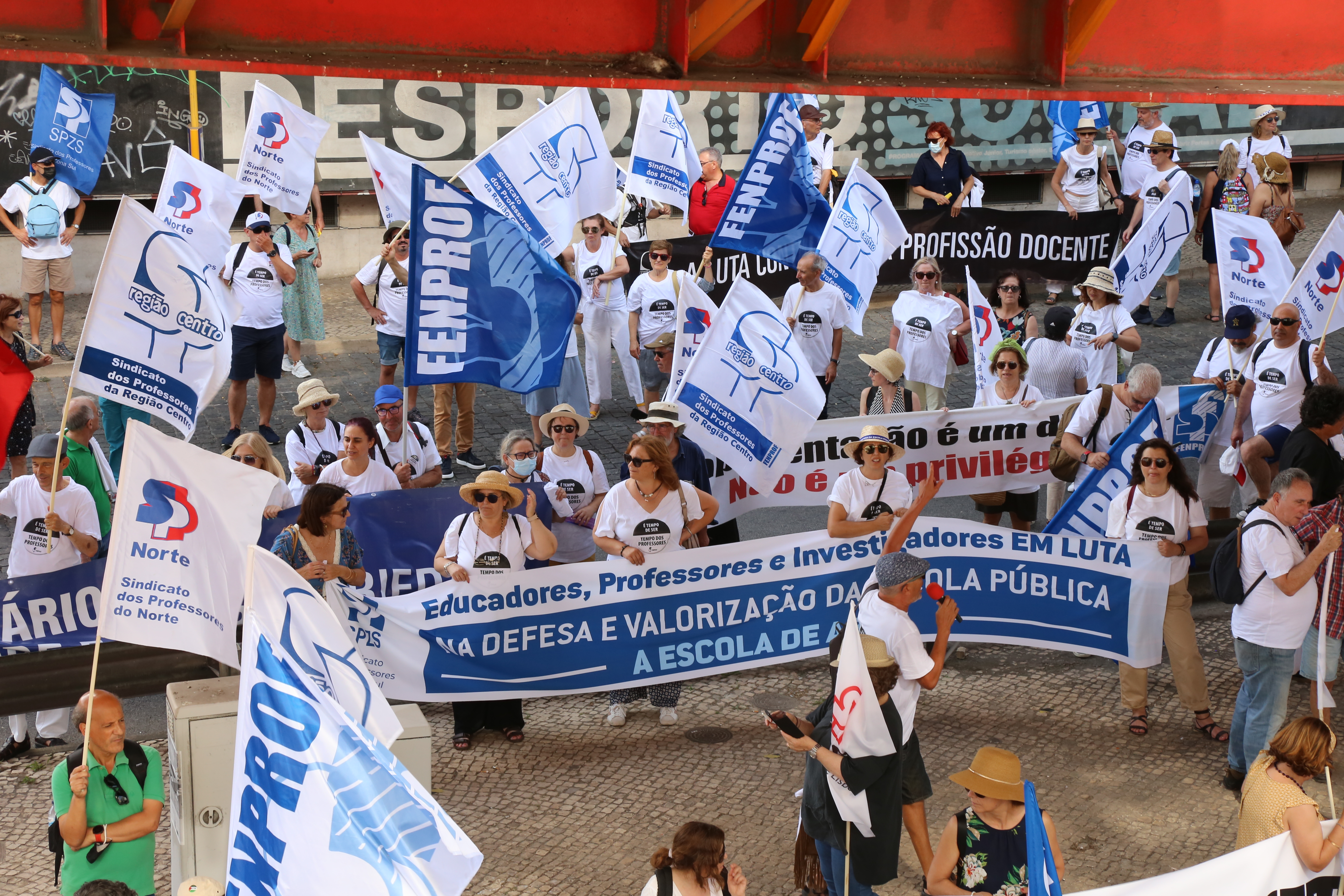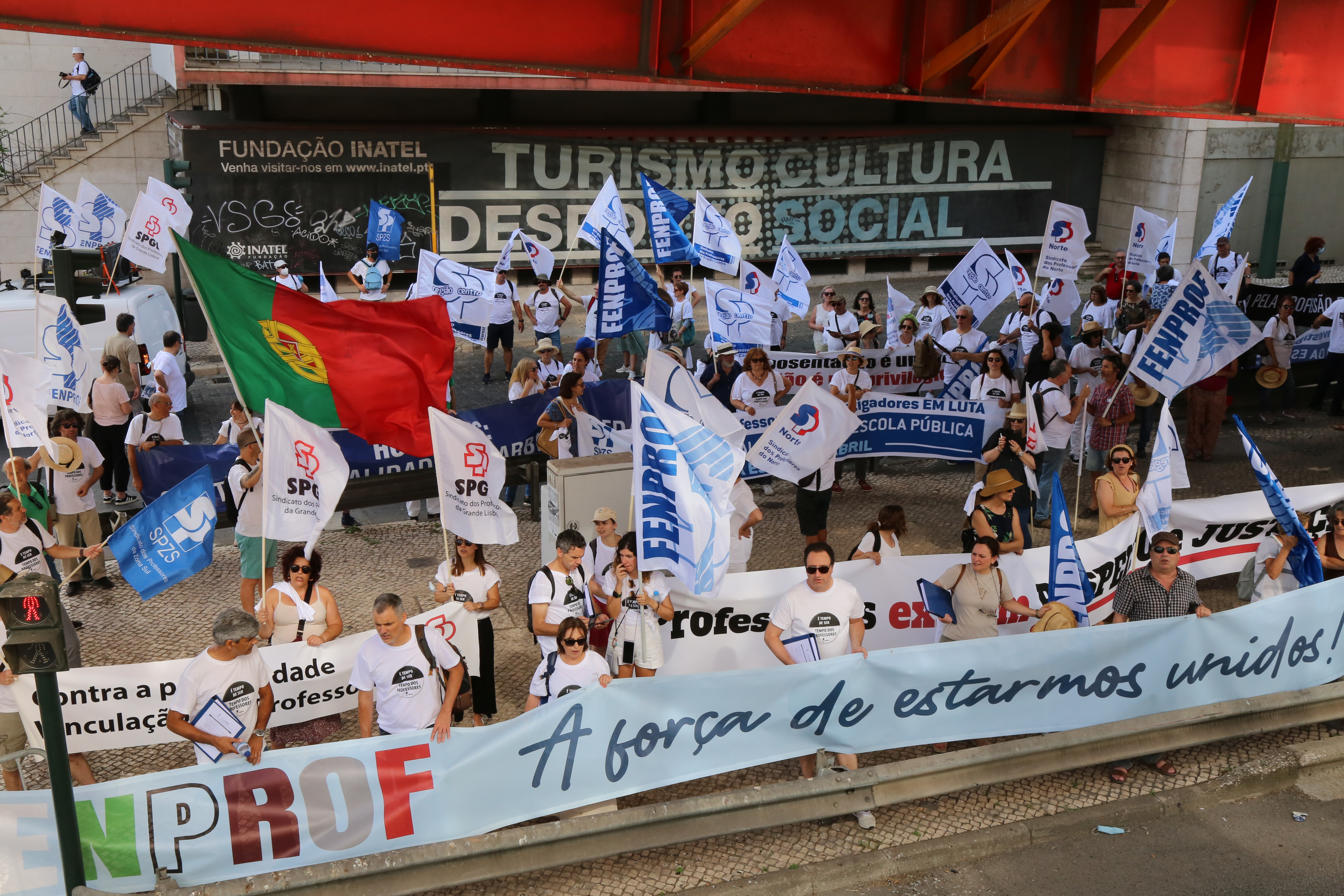 Após o plenário, realizado no Jardim da Estrela, em Lisboa, os professores desfilaram, em cordão humano, pela Avenida Infante Santo até às instalações do ME, onde entregaram a moção aprovada e o abaixo-assinado que reuniu mais de 17 mil assinaturas e onde estão resumidas as principais reivindicações dos docentes. Recorde-se que este abaixo-assinado já foi entregue à Assembleia da República, em forma de petição, e já foi debatido na Comissão Parlamentar de Educação e Ciência.