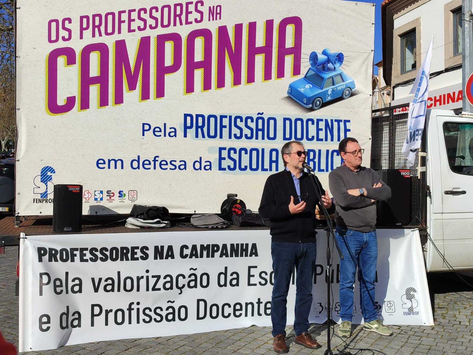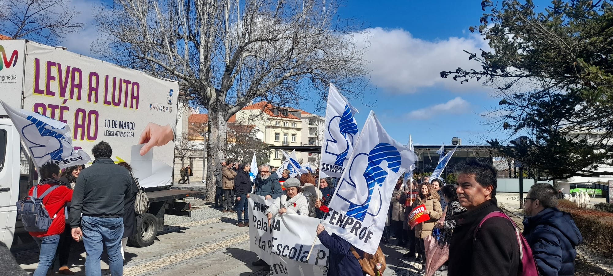 Começando por reunir no salão da Biblioteca Municipal de Castelo Branco, assim que o tempo deixou, a luta saltou para a rua, trazendo para junto da população aquelas que são as principais preocupações dos docentes no plano profissional e socioprofissional.