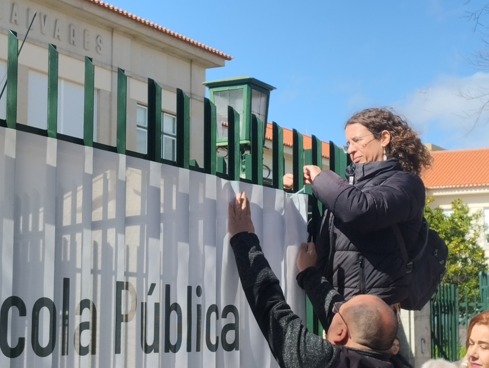 Mas o sol espreitou e os professores quiseram vir para a rua, designadamente aproveitando para colocar, em acto público, uma faixa que vai lembrar a população por que lutam os professores – pela sua profissão e pela Escola Pública, que, por ser pública, é de todos e não só de alguns.