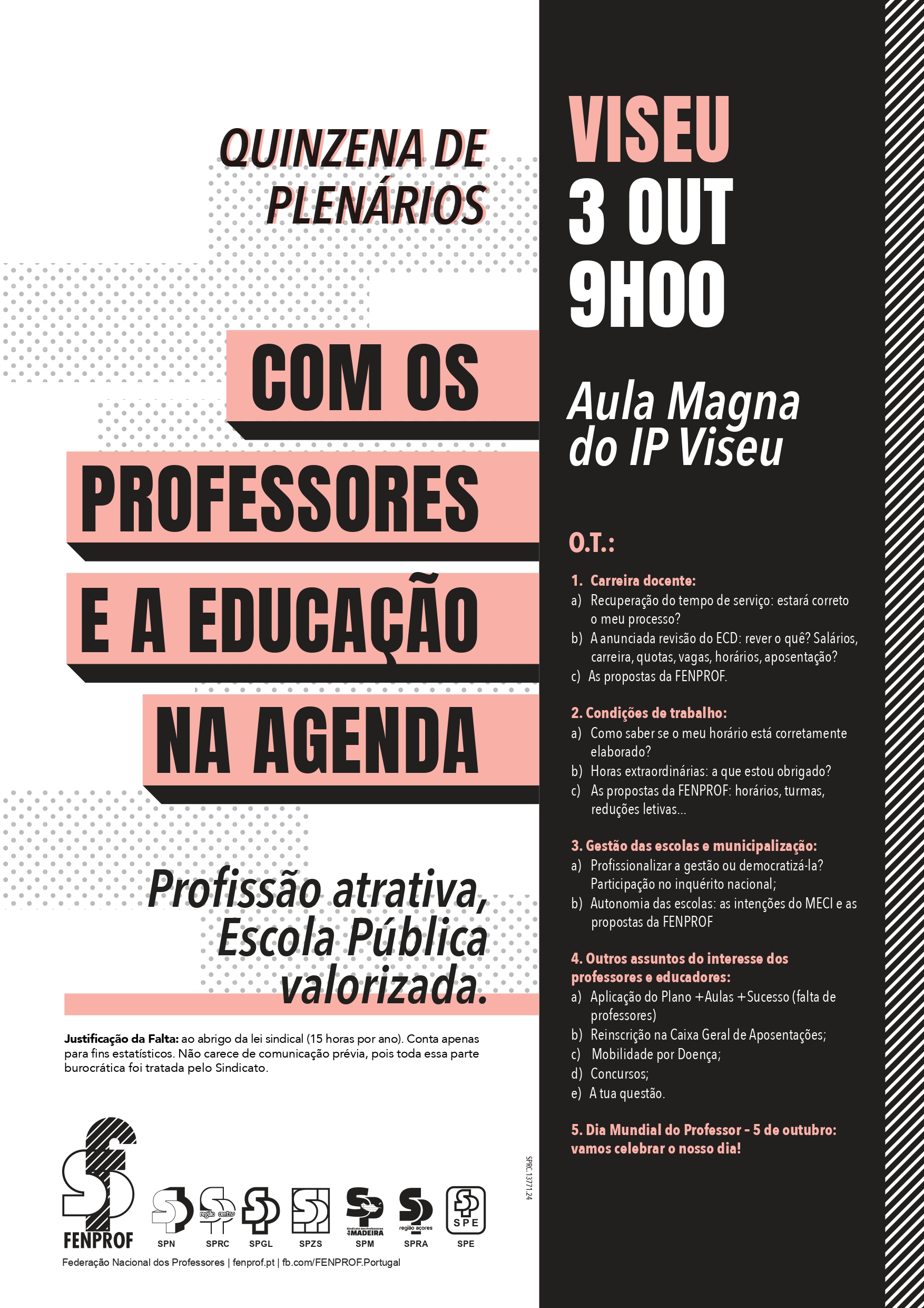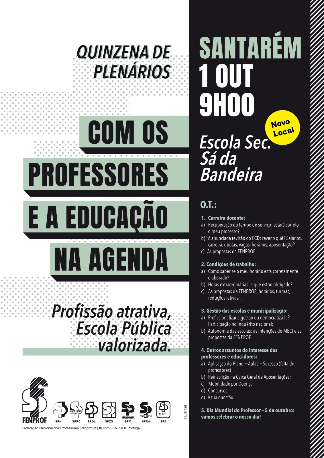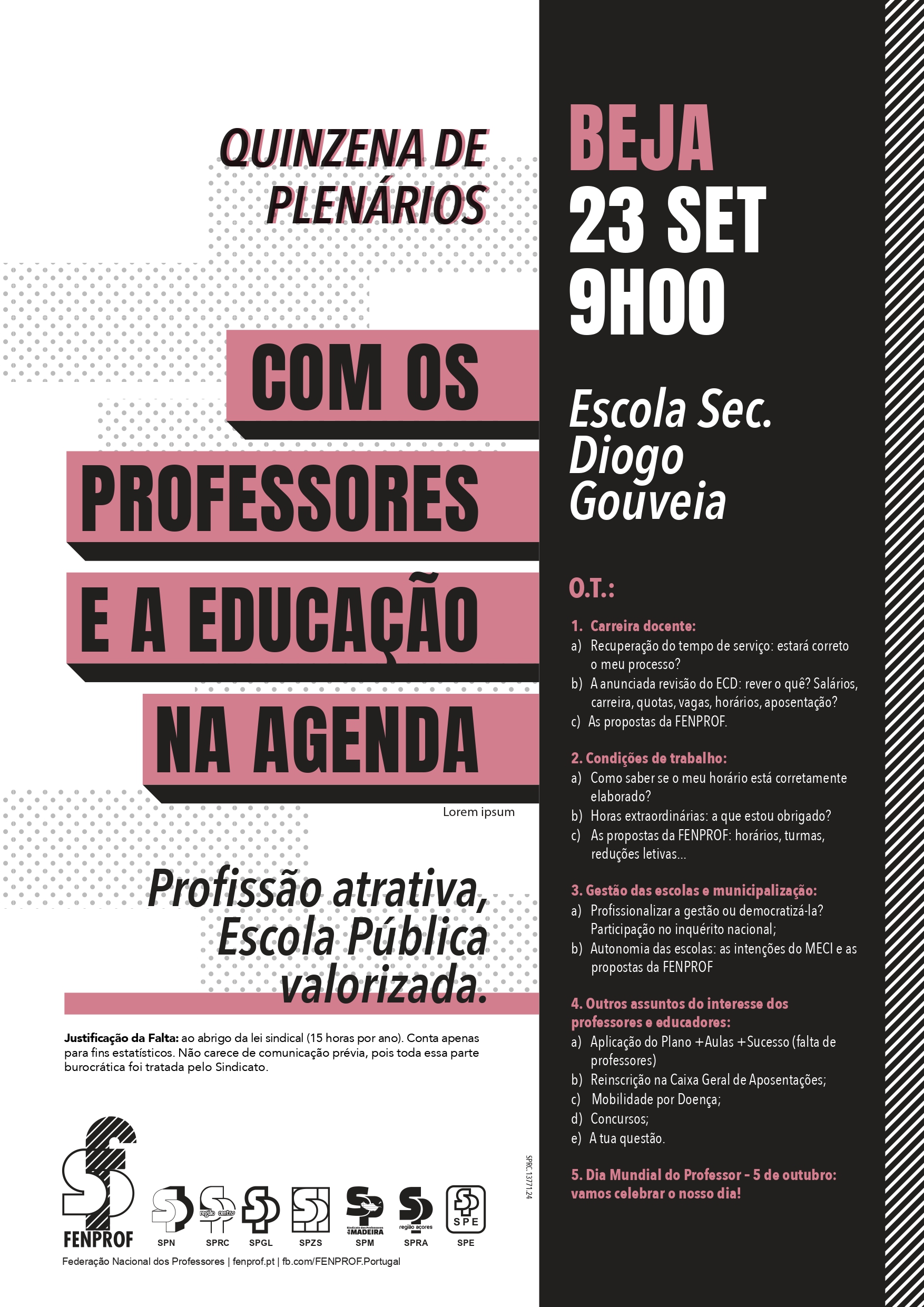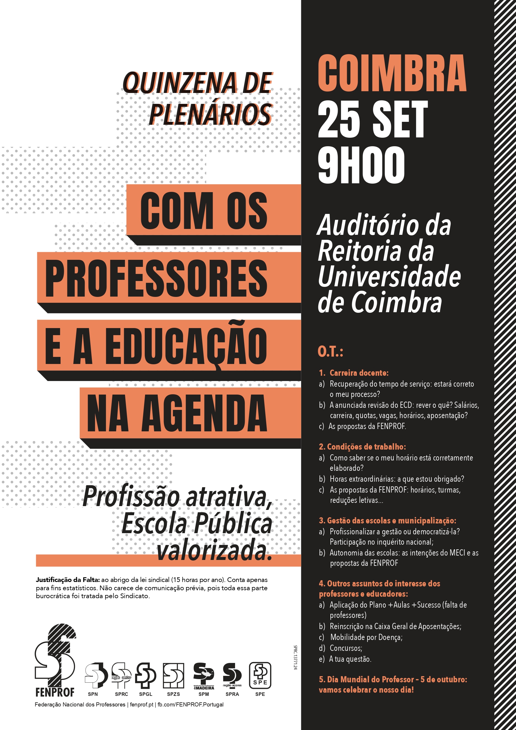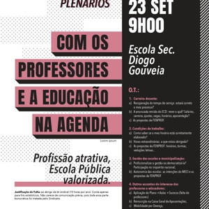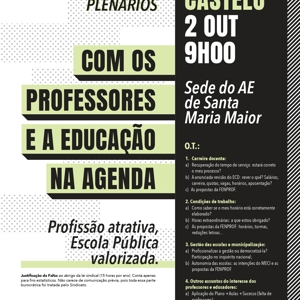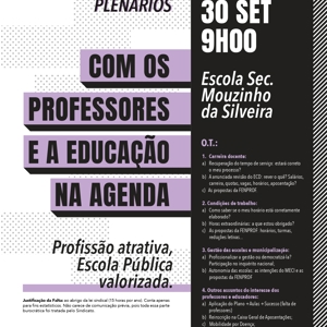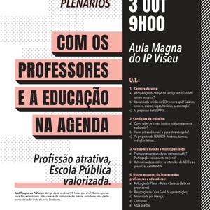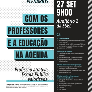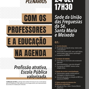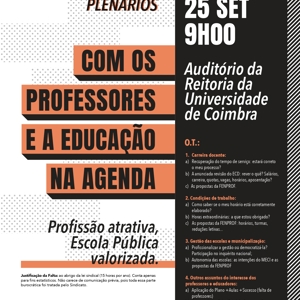 Plenários abertos a todos os professores e que surgem num momento muito oportuno, pois os professores e as escolas estão confrontados com um processo de recuperação do tempo de serviço cheio de problemas e complicações e um arranque do ano letivo em que é pedido aos professores no ativo o impossível.