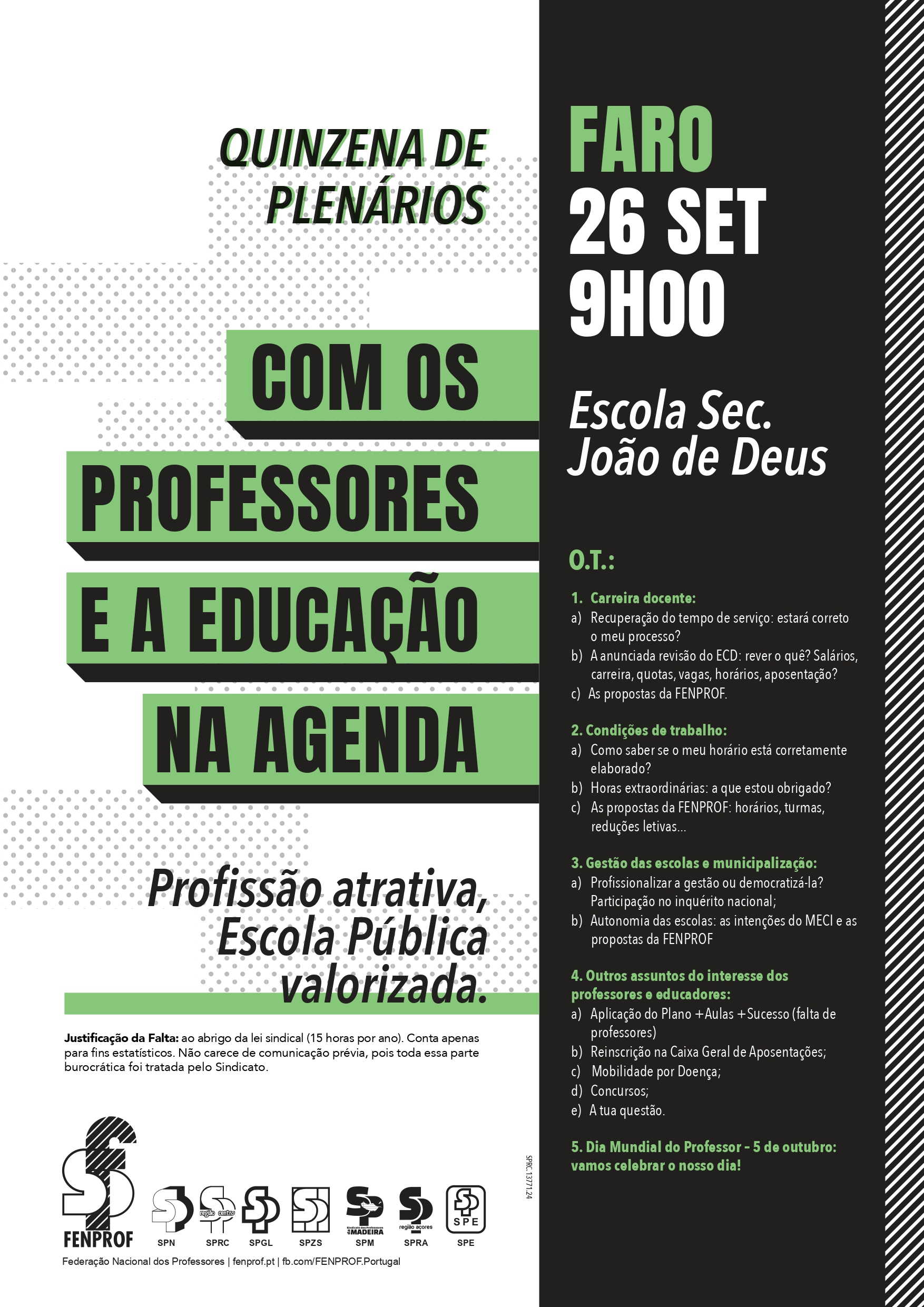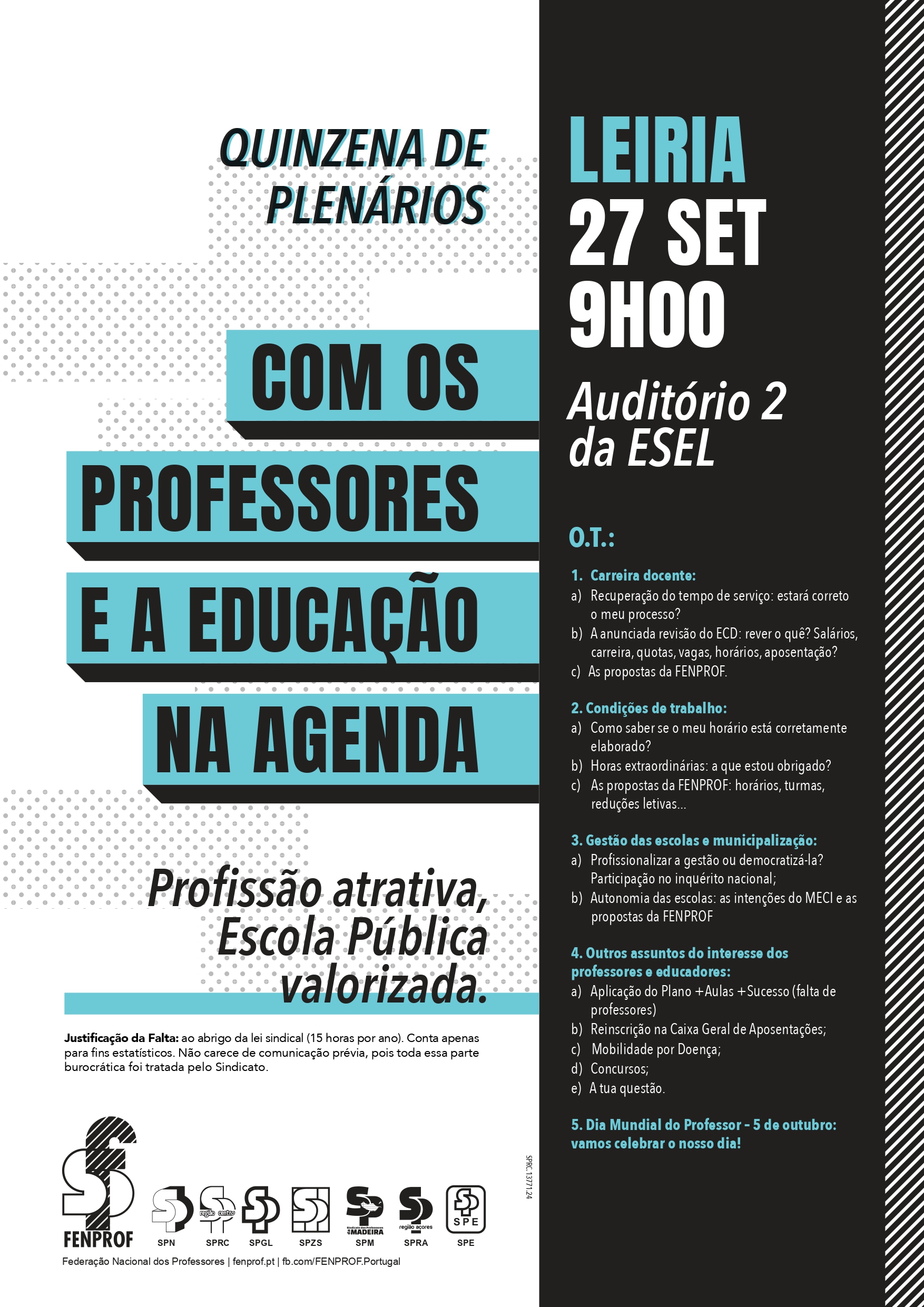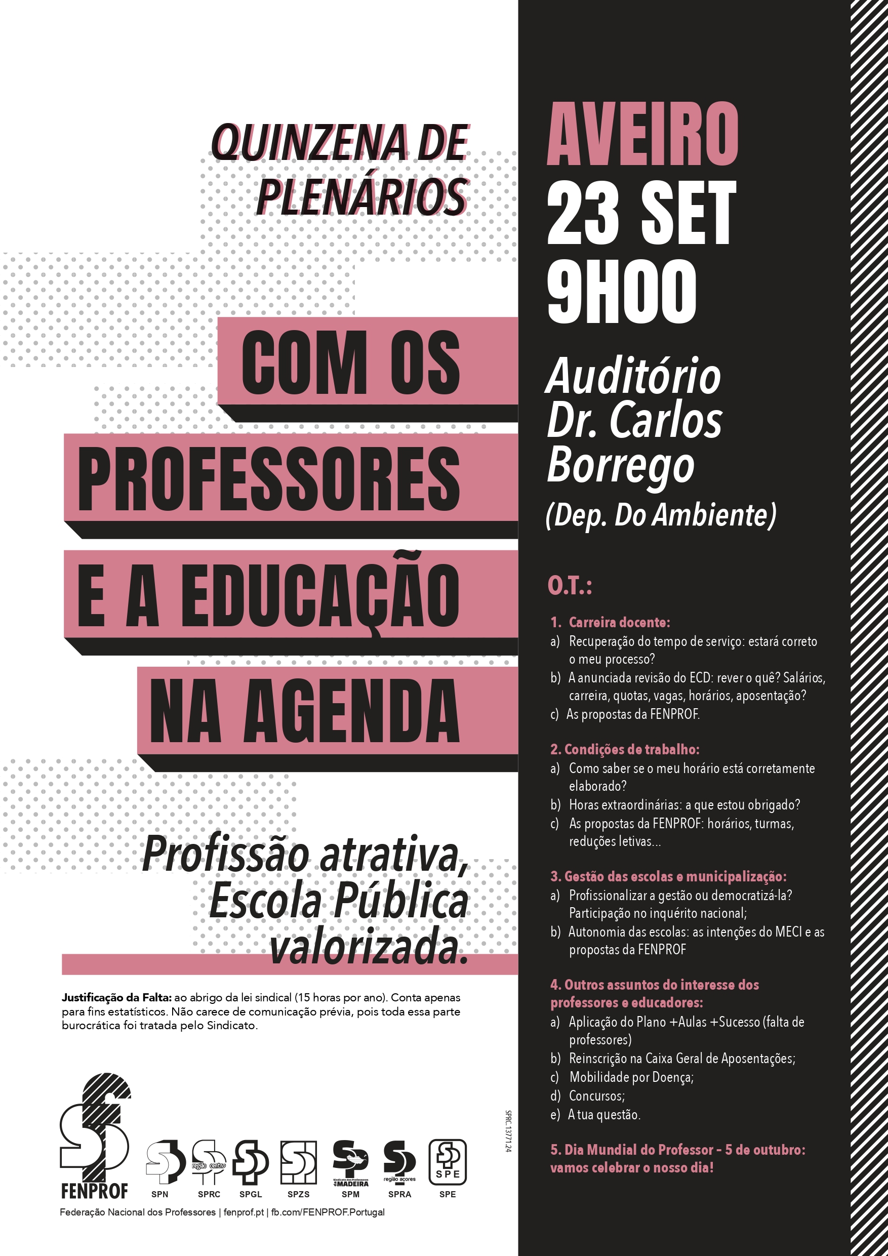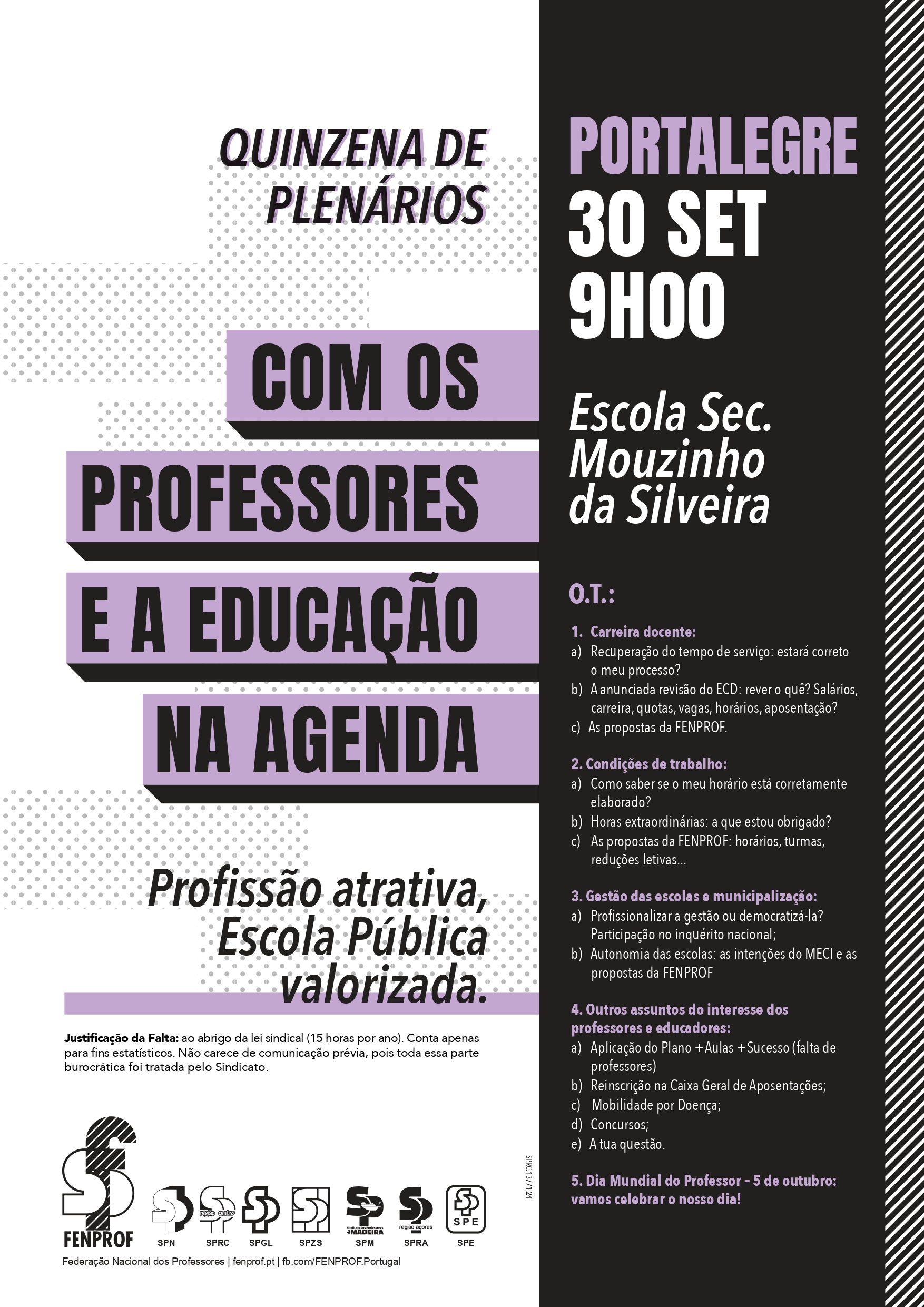 A FENPROF vai realizar plenários em todos os distritos do continente, à razão de dois plenários por dia, entre 23 de setembro e 3 de outubro.