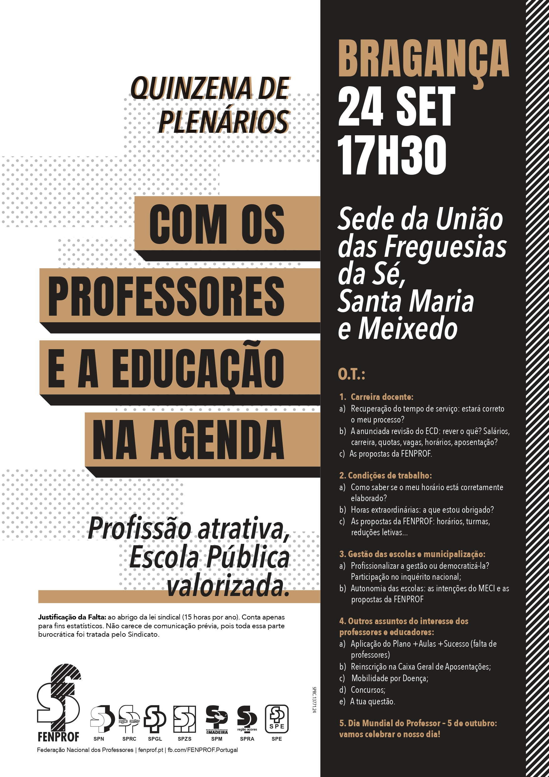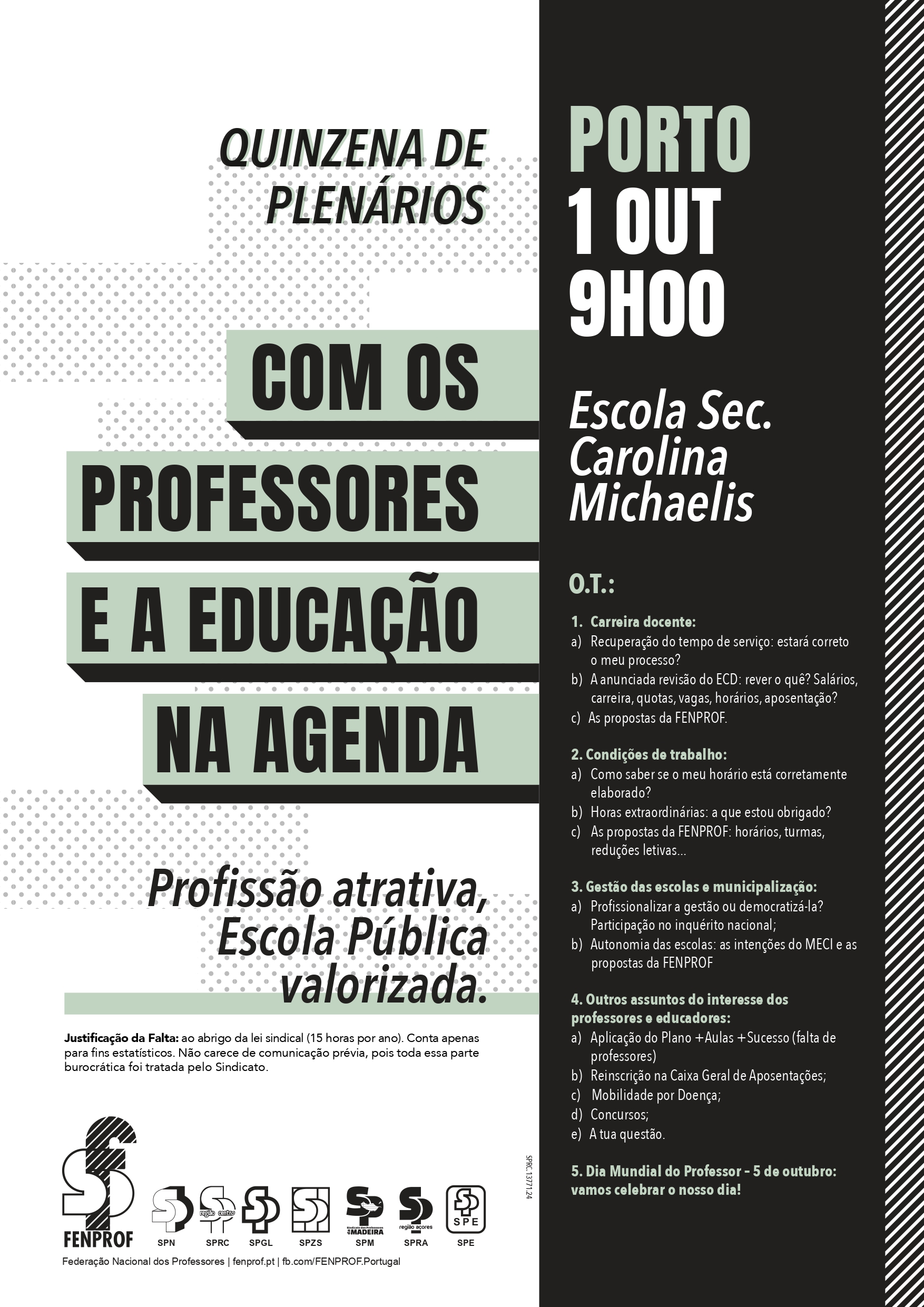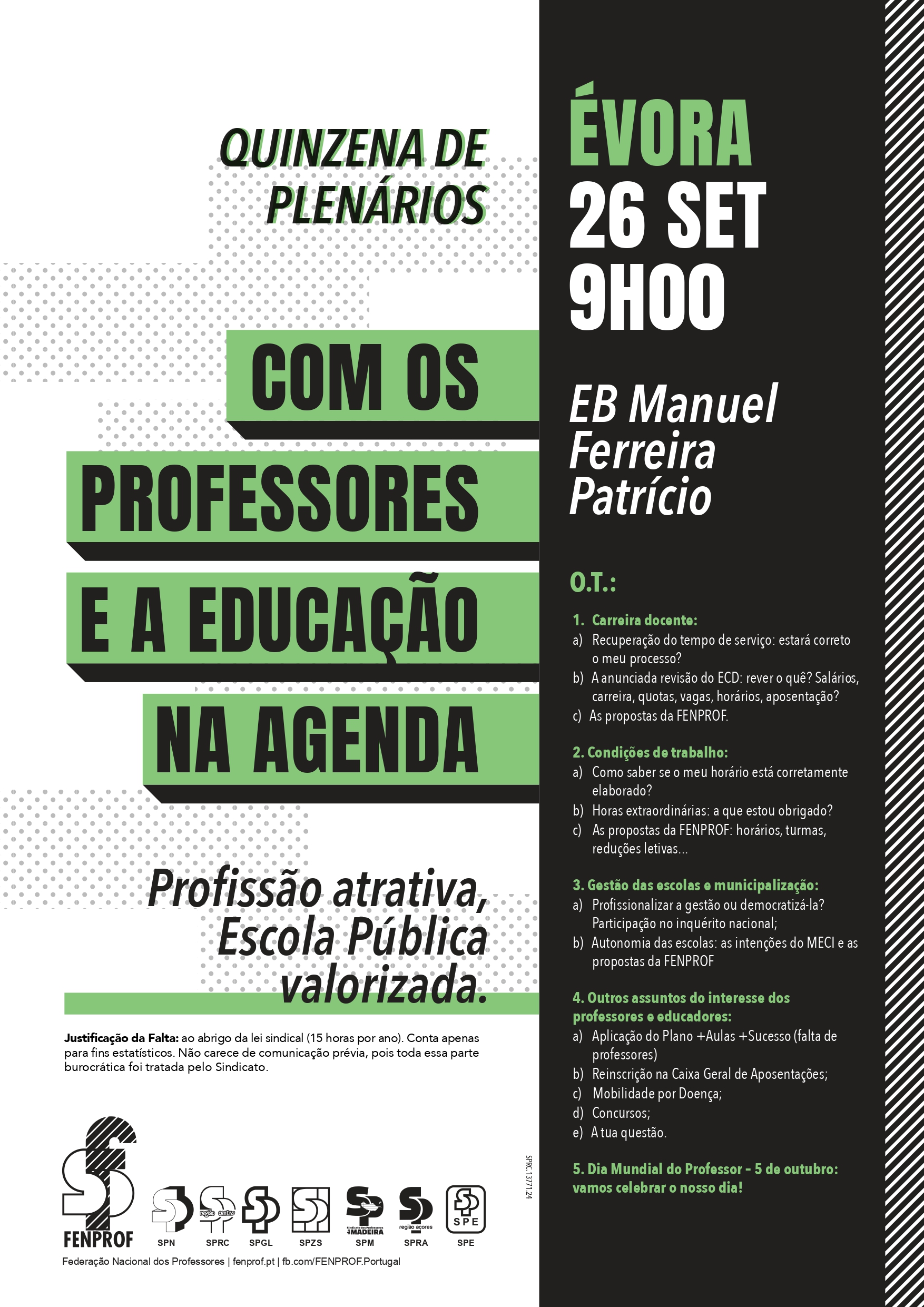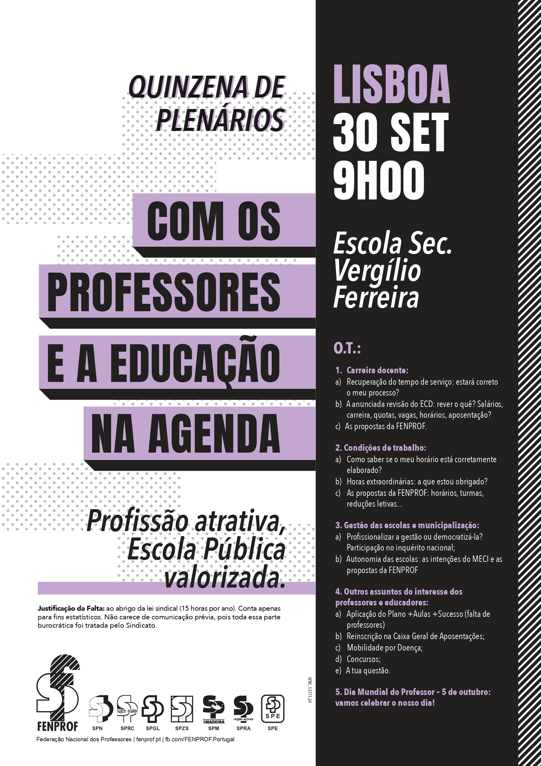 A FENPROF vai realizar plenários em todos os distritos do continente, à razão de dois plenários por dia, entre 23 de setembro e 3 de outubro.