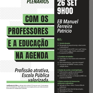 Plenários em setembro/outubro discutem problemas e formas de intervenção dos professores