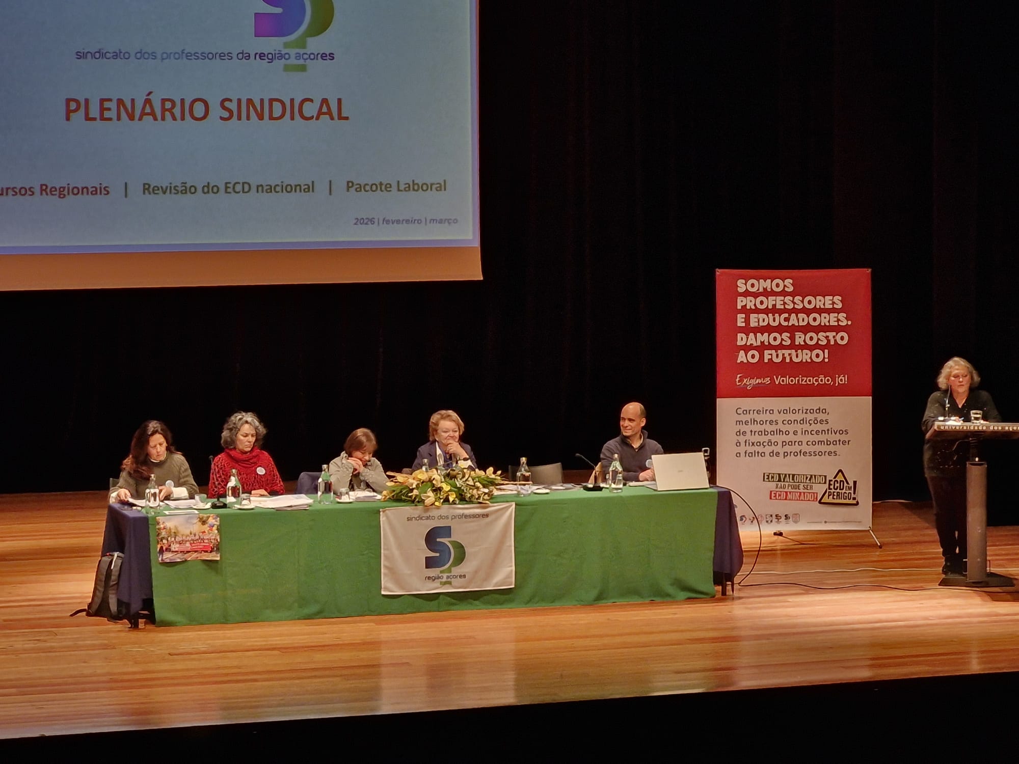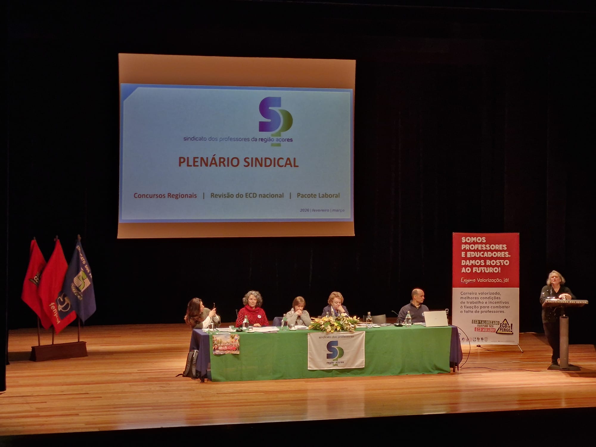 Na Região Autónoma dos Açores, a Caravana esteve nas ilhas do Faial e de São Miguel. Anabela Sotaia, presidente do Conselho Nacional da FENPROF, participou nos plenários de Ponta Delgada.