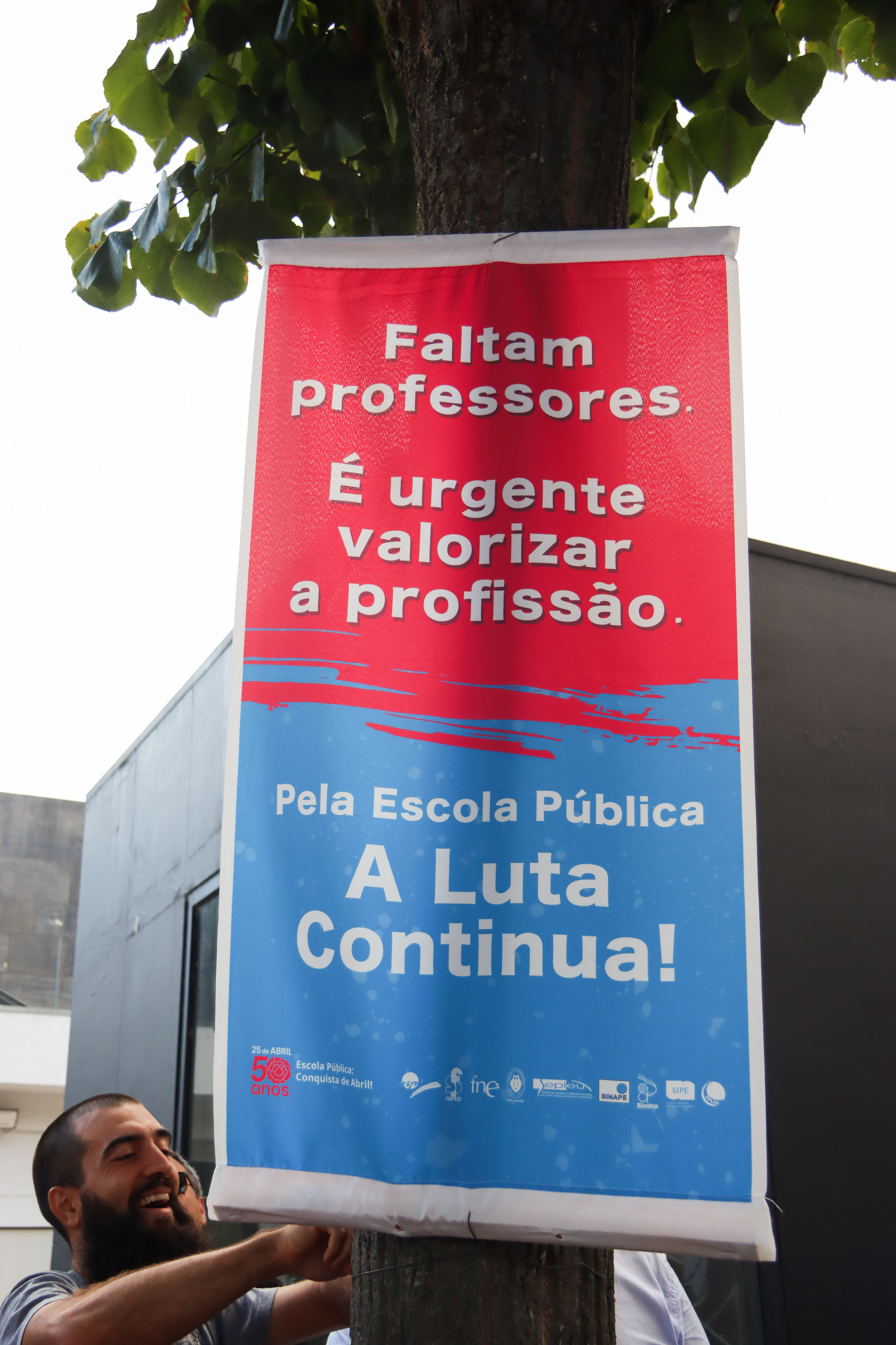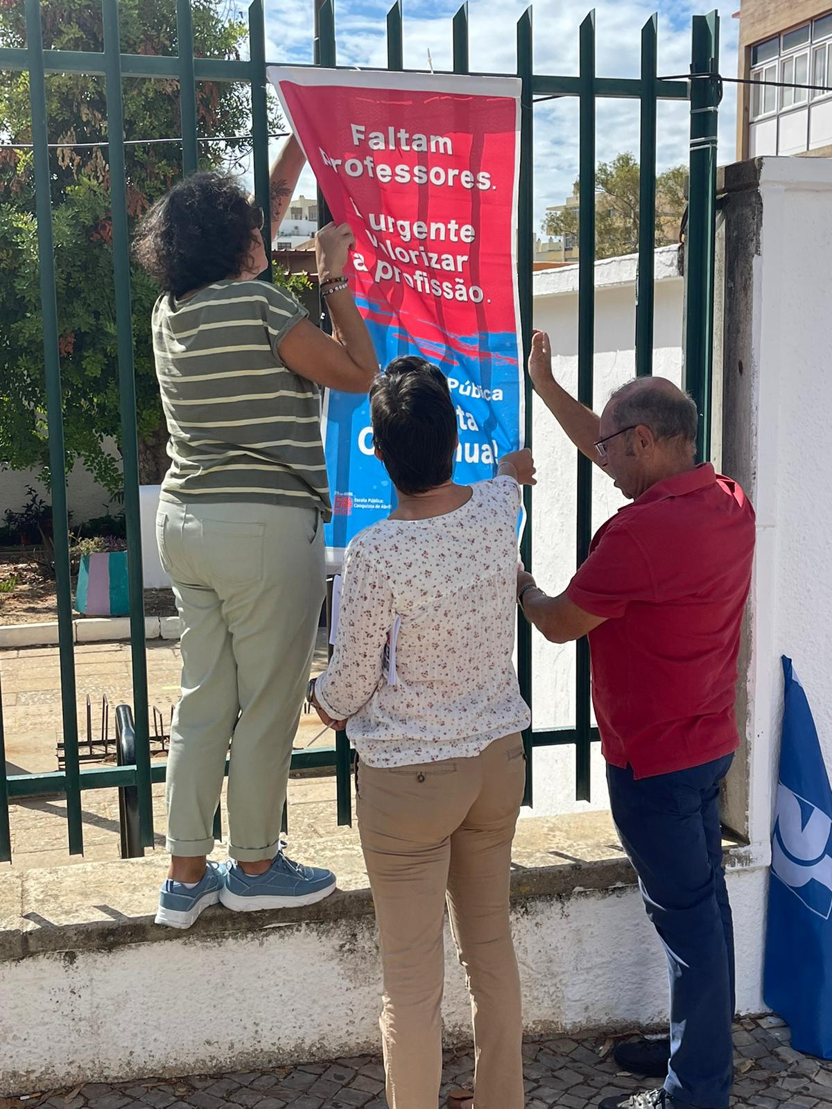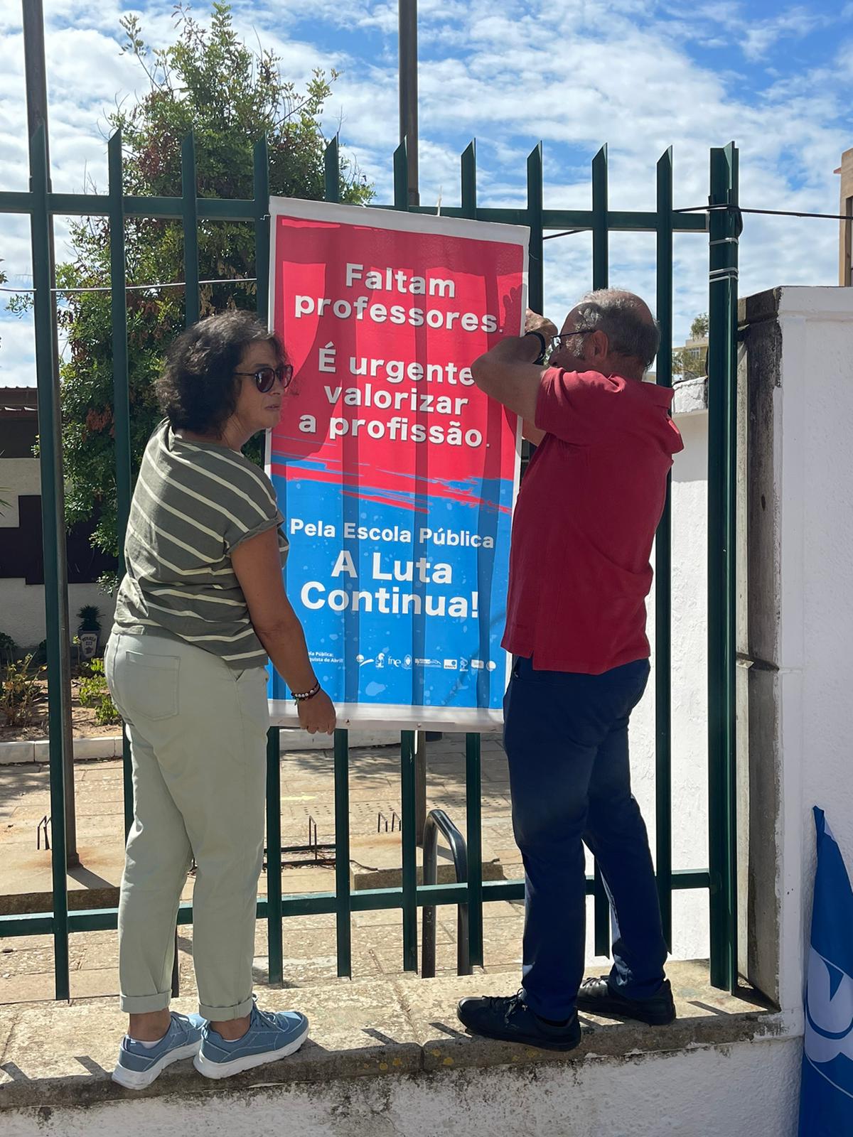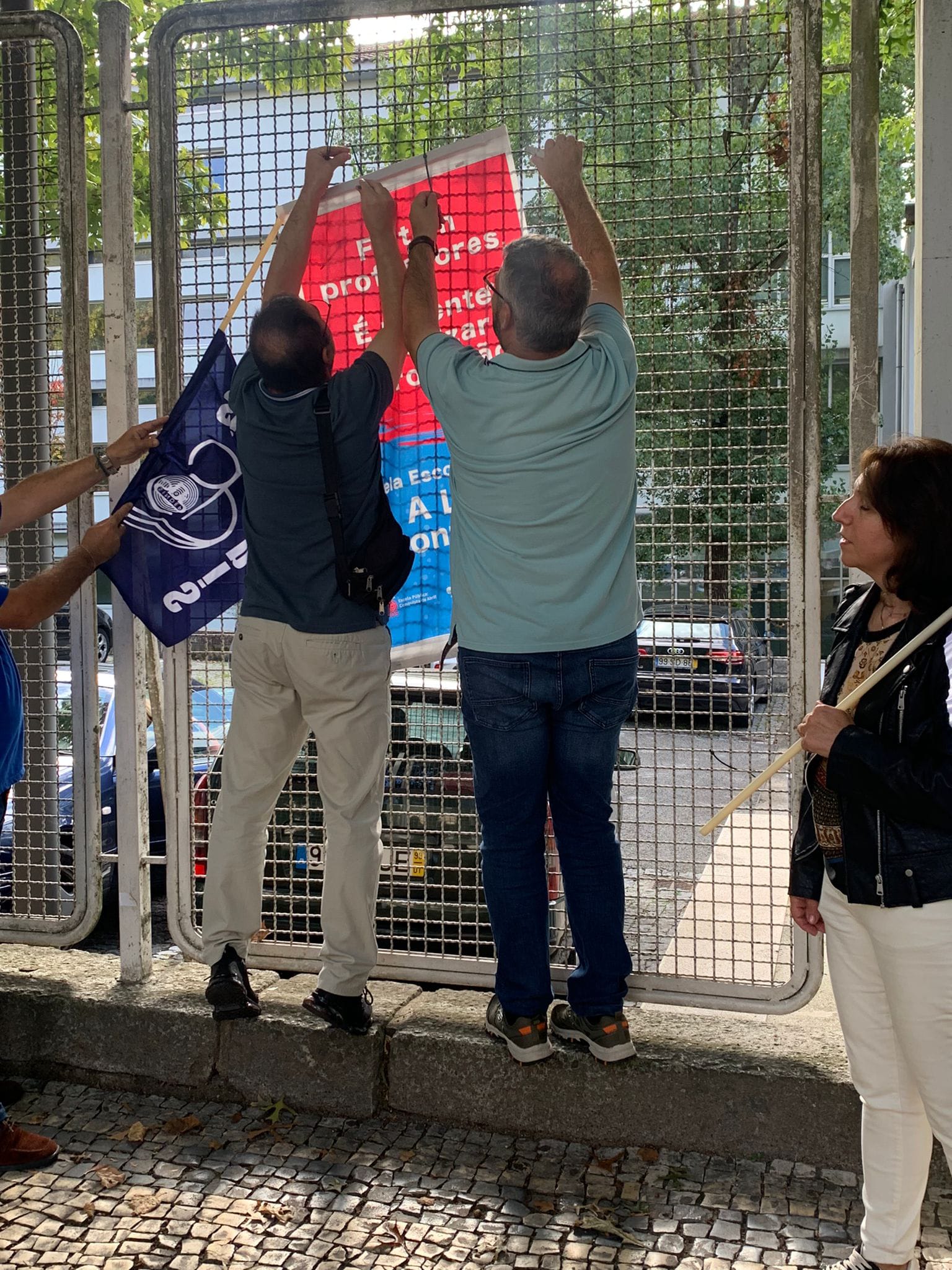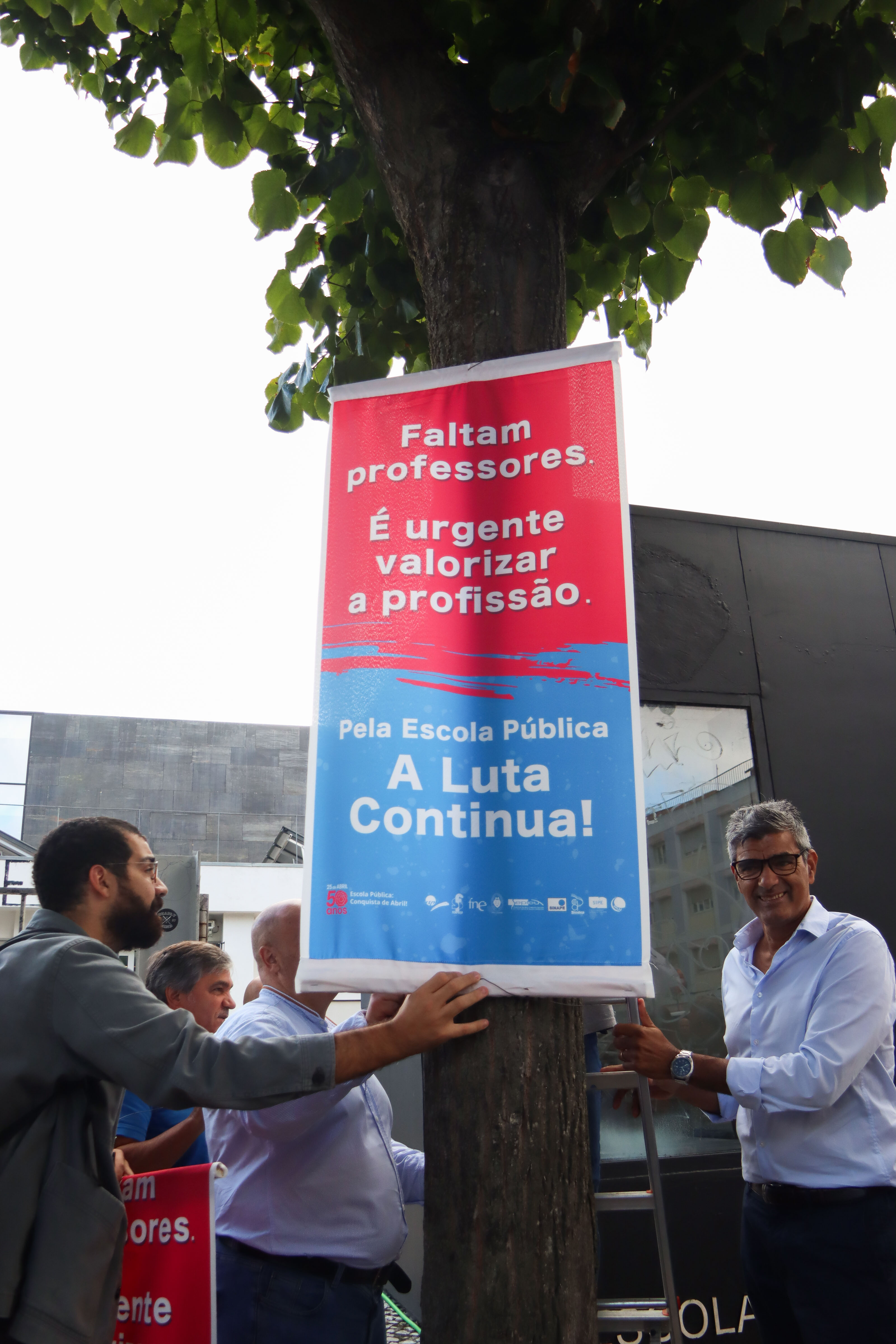 Integradas no calendário das ações que serão realizadas na abertura do ano letivo, os sindicatos que convergem na ação pela profissão e pela Escola Pública (ASPL, FENPROF, FNE, PRÓ-ORDEM, SEPLEU, SINAPE, SINDEP, SIPE e SPLIU) realizaram esta segunda-feira, 11 de setembro, pelas 10:30 horas, ações de afixação de materiais (pendões e MUPIs) em todo o país, em locais públicos, nas escolas e sedes de agrupamento de escolas.