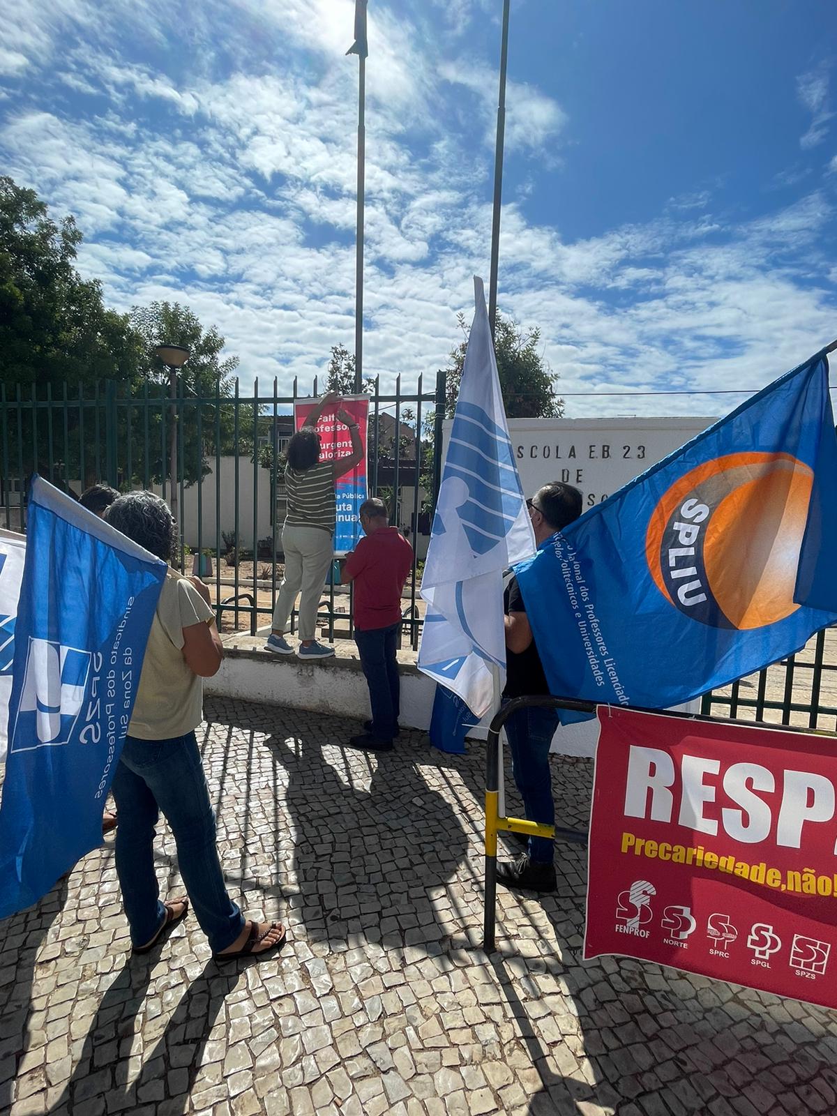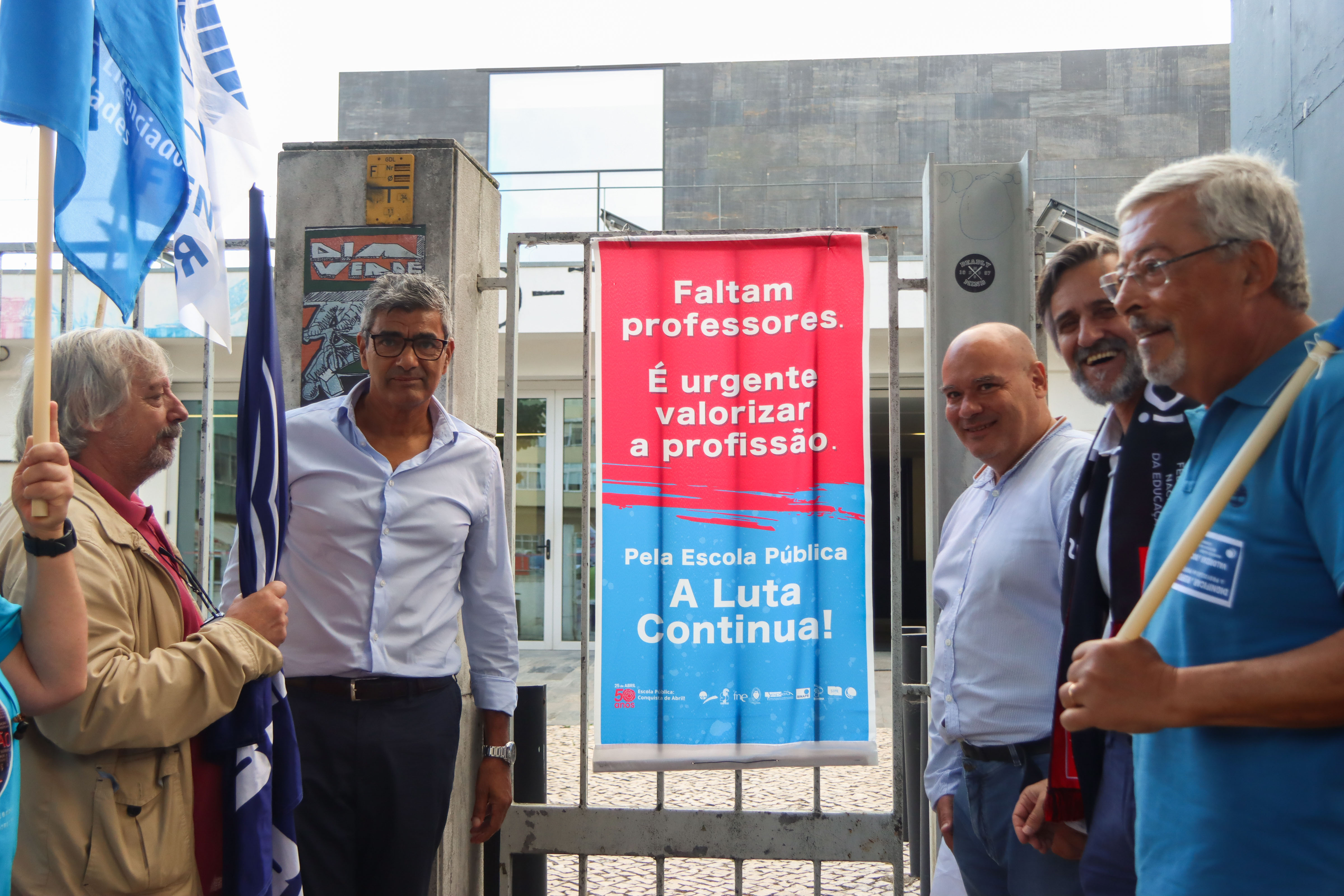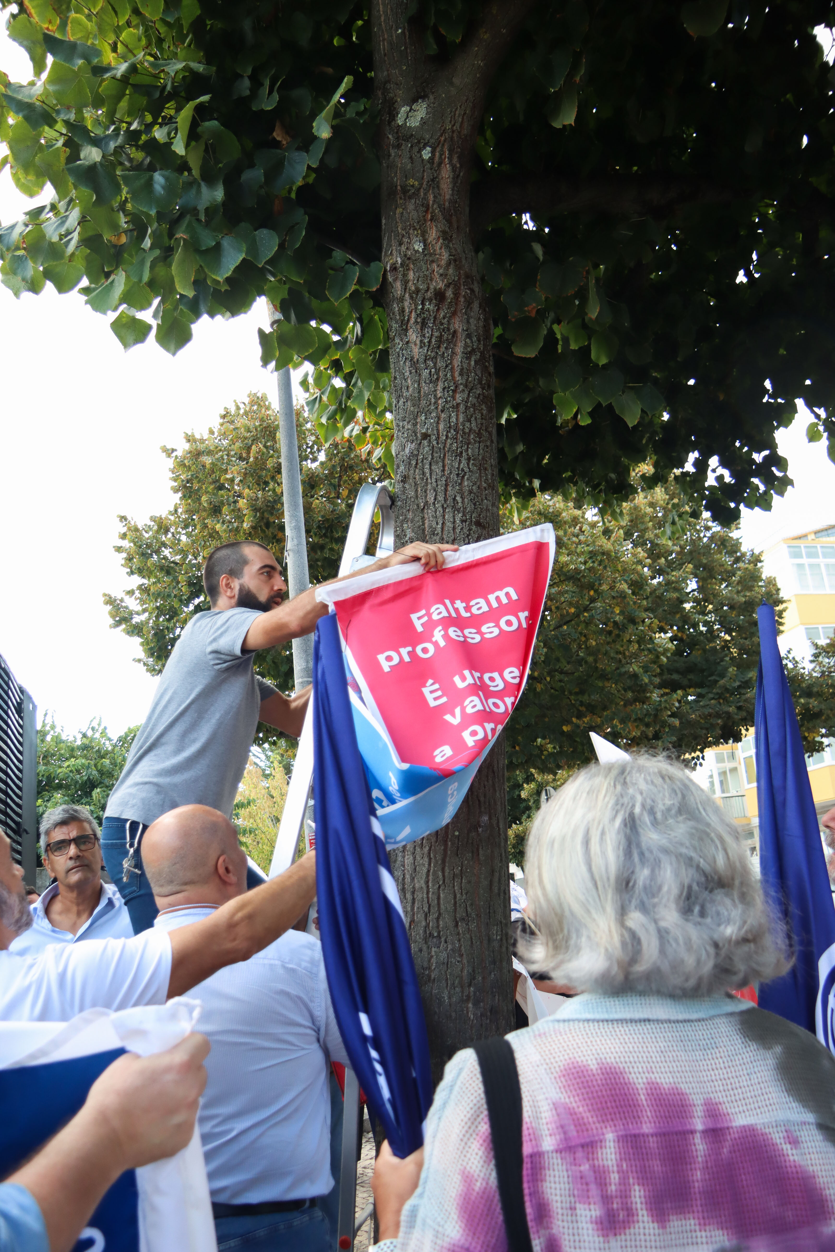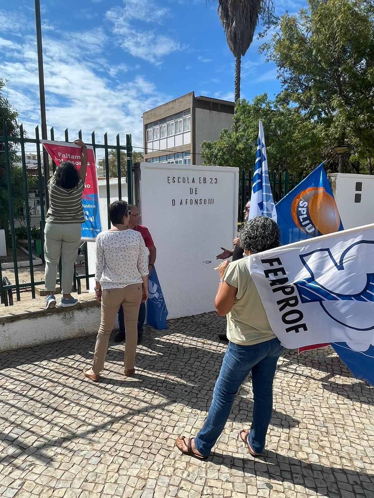 Integradas no calendário das ações que serão realizadas na abertura do ano letivo, os sindicatos que convergem na ação pela profissão e pela Escola Pública (ASPL, FENPROF, FNE, PRÓ-ORDEM, SEPLEU, SINAPE, SINDEP, SIPE e SPLIU) realizaram esta segunda-feira, 11 de setembro, pelas 10:30 horas, ações de afixação de materiais (pendões e MUPIs) em todo o país, em locais públicos, nas escolas e sedes de agrupamento de escolas.