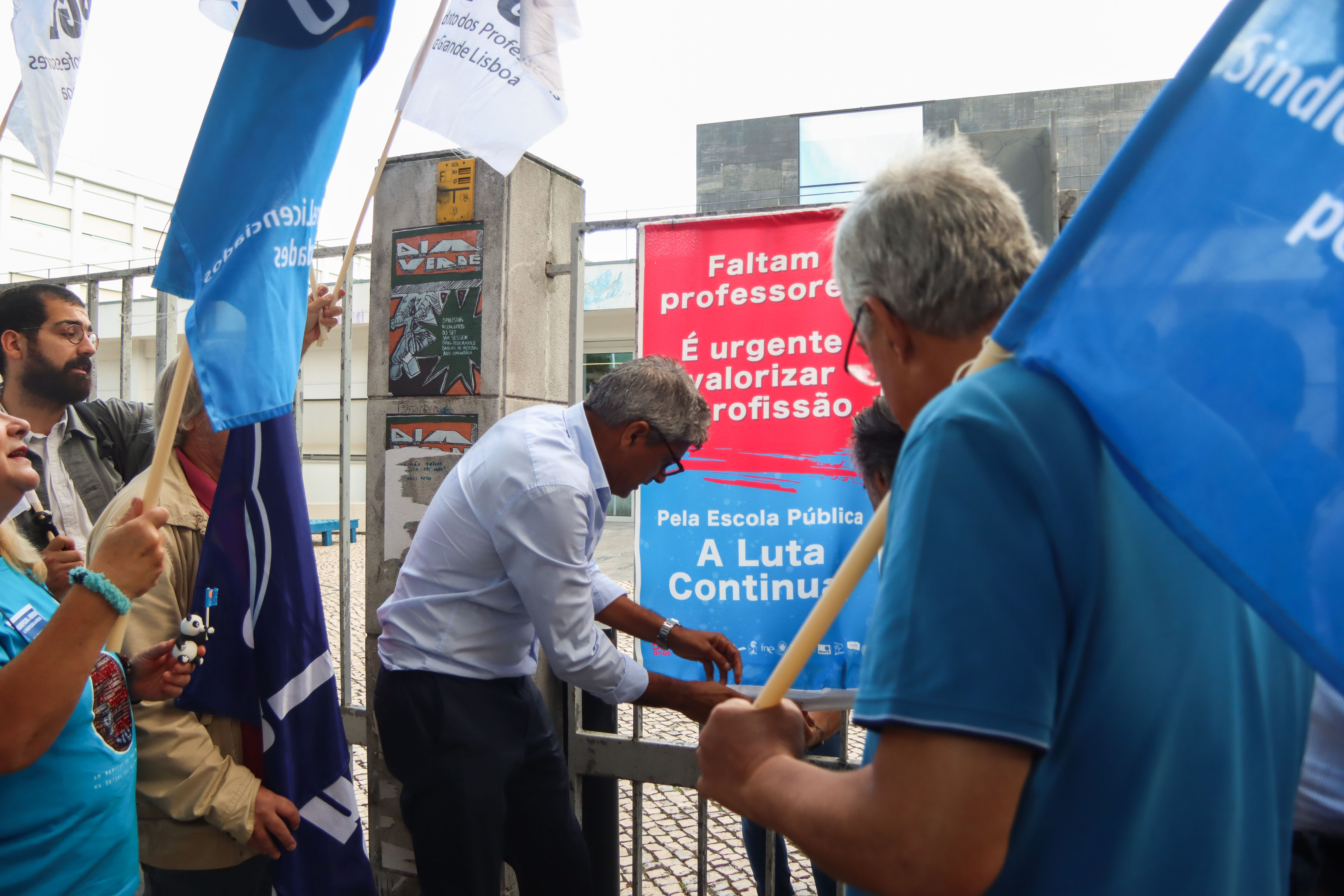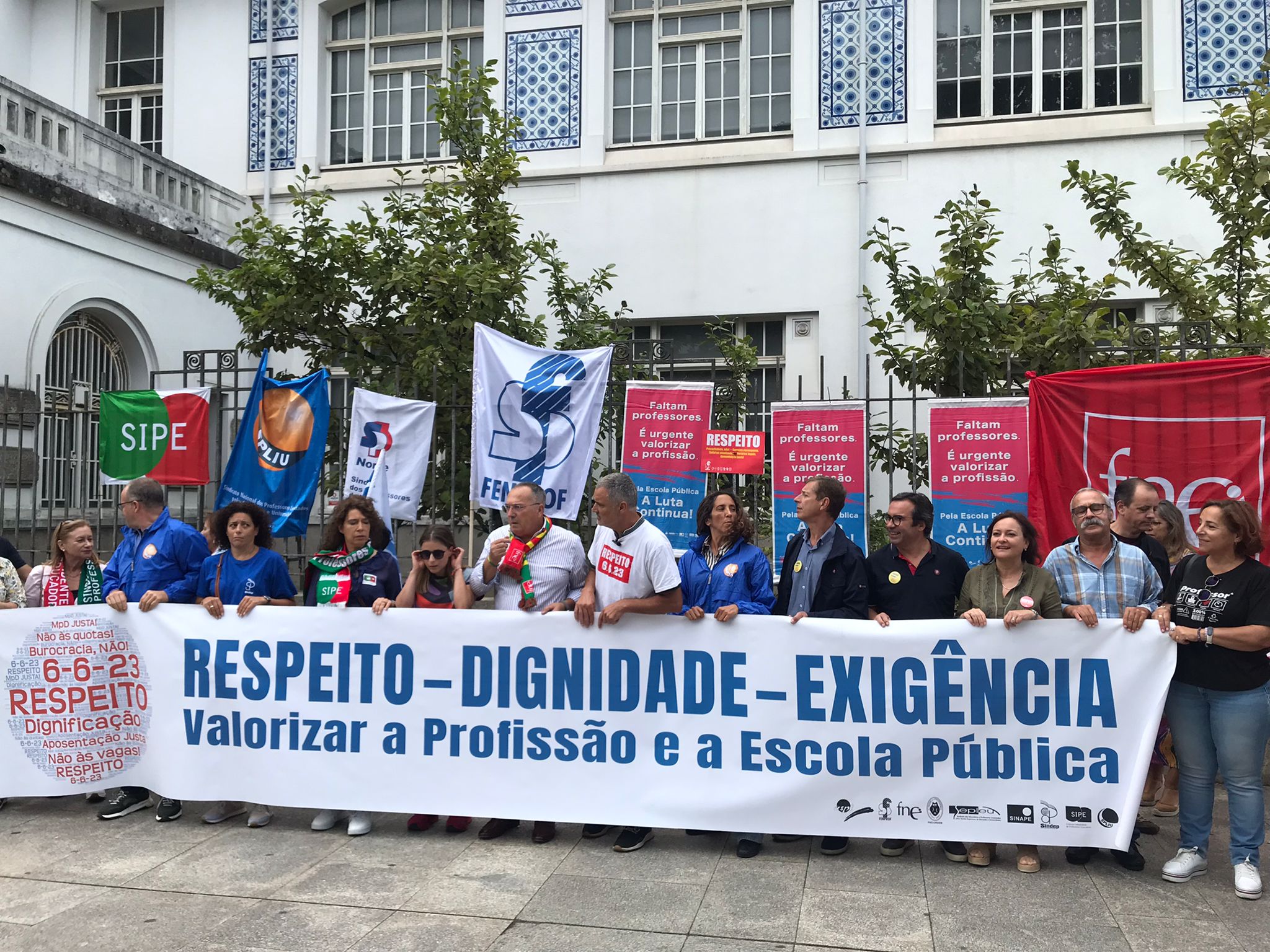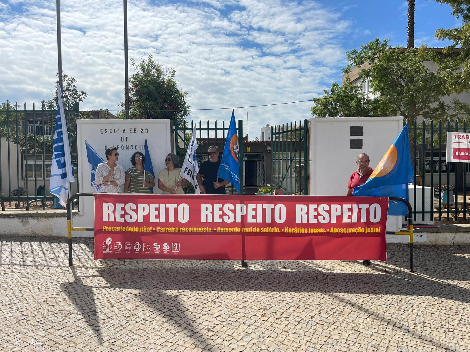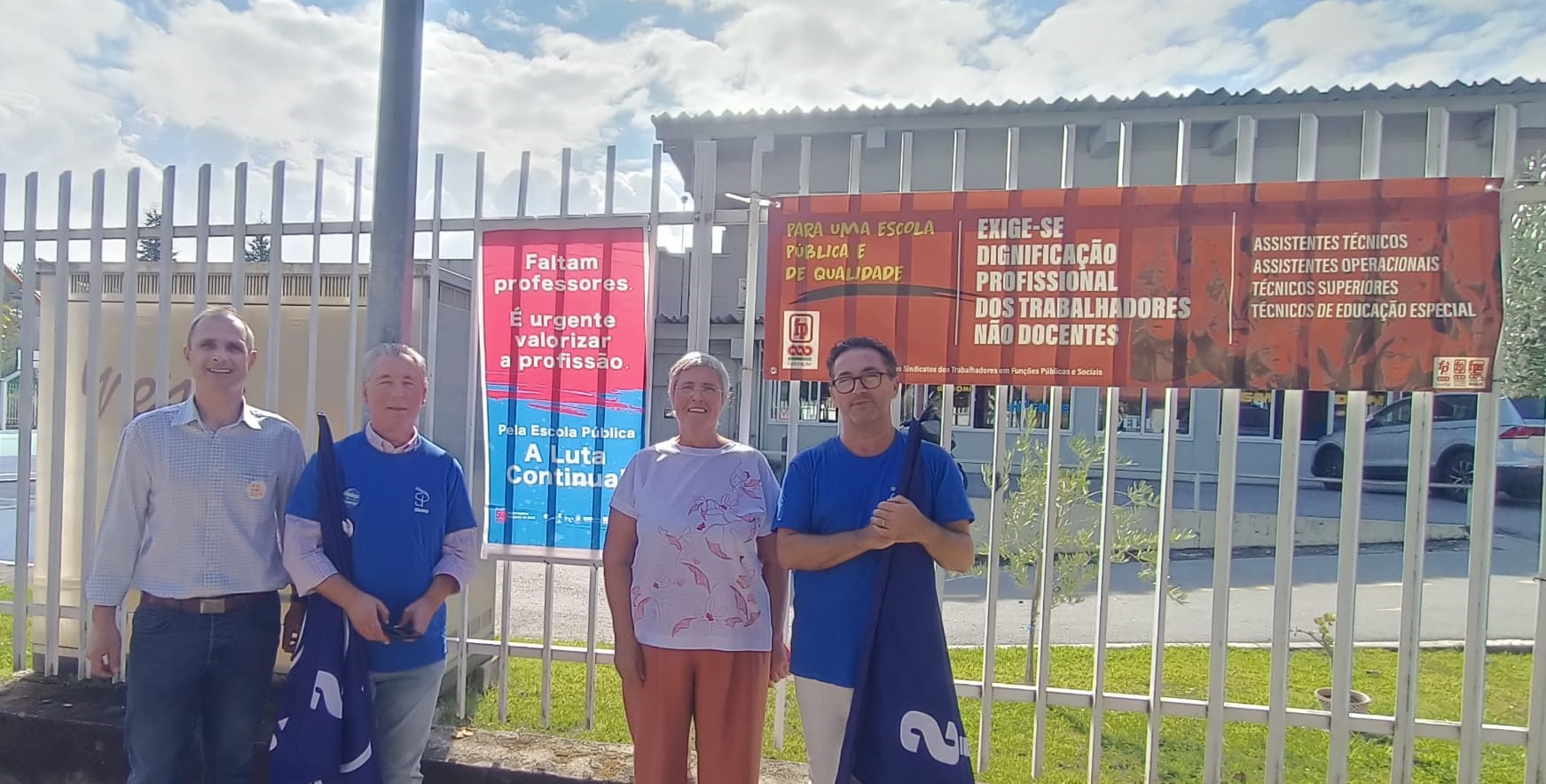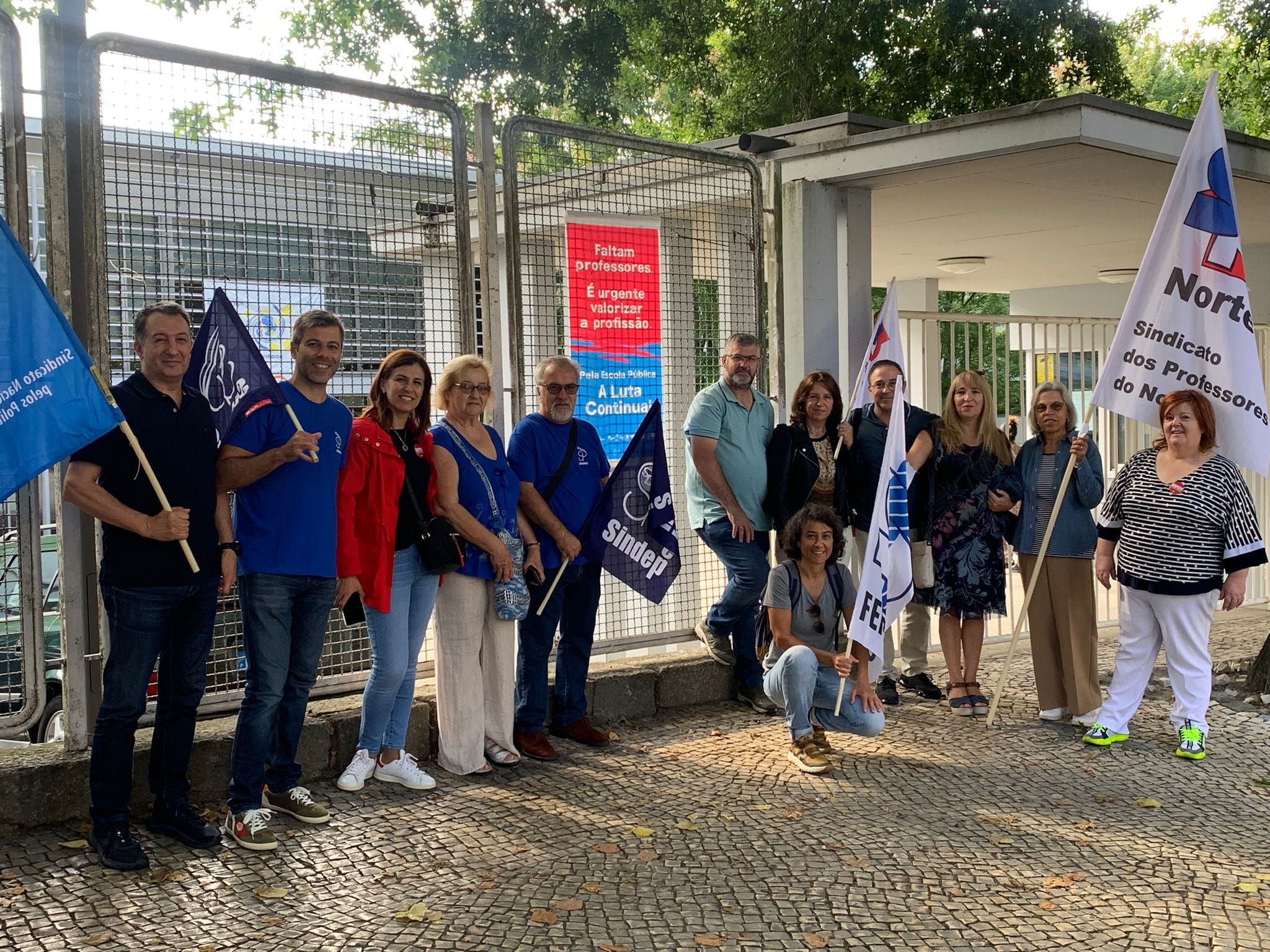 Integradas no calendário das ações que serão realizadas na abertura do ano letivo, os sindicatos que convergem na ação pela profissão e pela Escola Pública (ASPL, FENPROF, FNE, PRÓ-ORDEM, SEPLEU, SINAPE, SINDEP, SIPE e SPLIU) realizaram esta segunda-feira, 11 de setembro, pelas 10:30 horas, ações de afixação de materiais (pendões e MUPIs) em todo o país, em locais públicos, nas escolas e sedes de agrupamento de escolas.