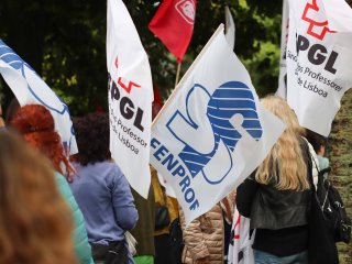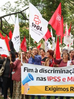 Os Docentes das IPSS e Misericórdias estiveram esta sexta-feira (21 de outubro) em greve e concentraram-se em Lisboa, junto ao Ministério do Trabalho, Solidariedade e Segurança Social (Praça de Londres) e no Porto, junto à sede da CNIS (Rua da Reboleira), em protesto contra a insistência da CNIS e da UMP insistem numa política de baixos salários, sem valorização do trabalho e sem recuperação de rendimentos.
