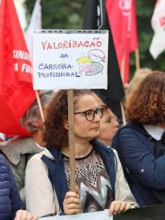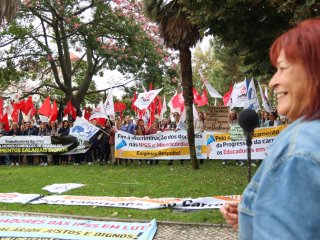 Deolinda Fernandes, membro do Conselho Nacional da FENPROF e representante dos docentes na Comissão Negociadora Sindical, lembrou os motivos do protesto dos docentes.