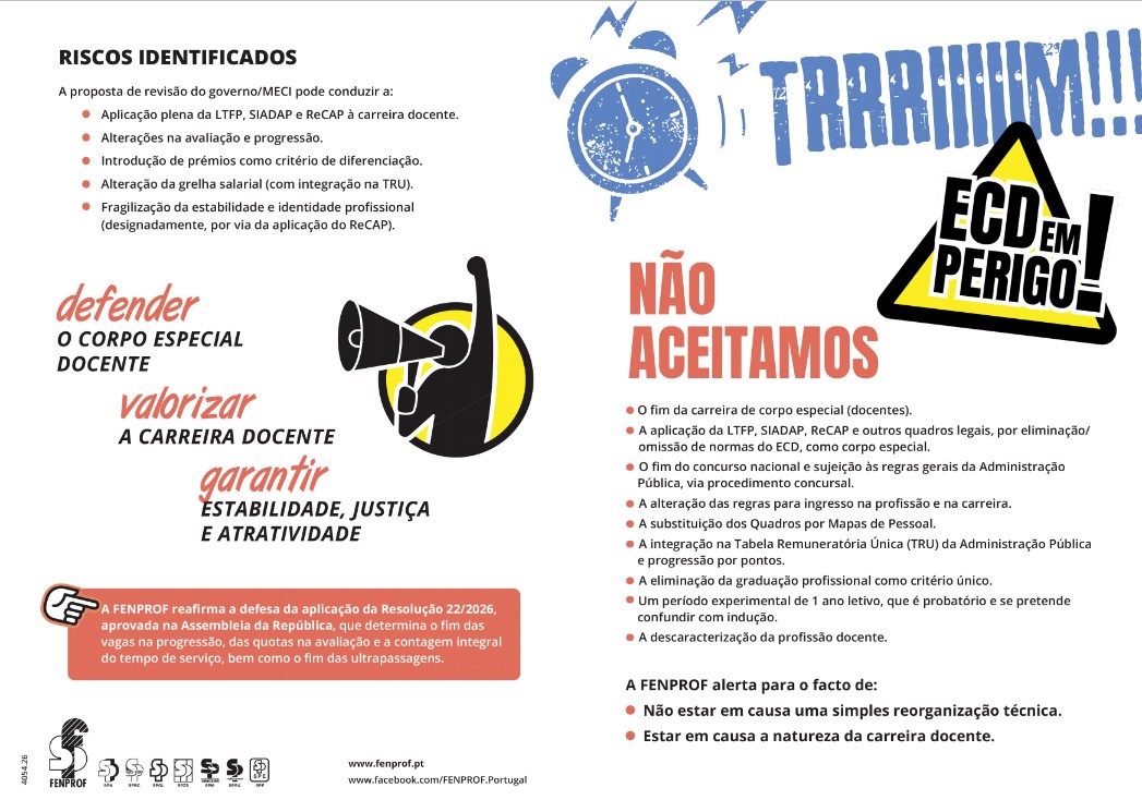 Tendo em vista a necessidade de disponibilizar a informação necessária para a compreensão do que está em causa neste processo de revisão do ECD, é fundamental tomar conhecimento do conteúdo deste folheto que começará agora a ser distribuído profusamente pelas escolas a todos os docentes.